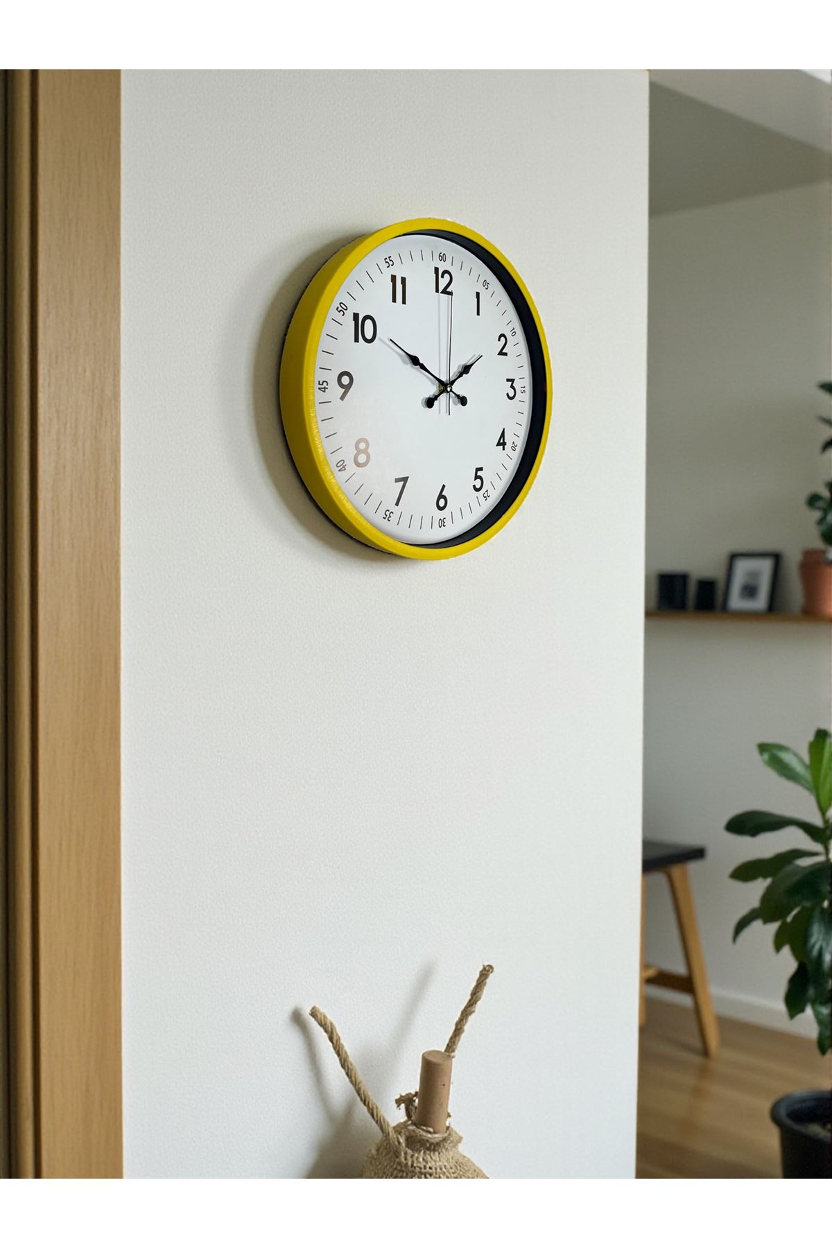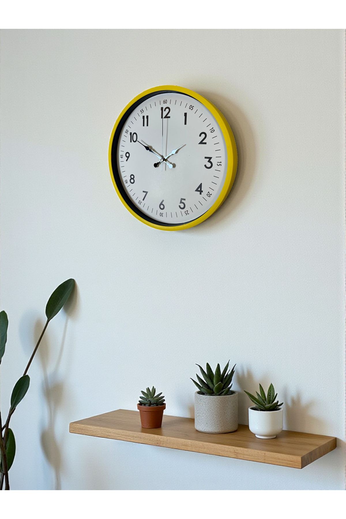 Dekorasyonuna enerji, canlılık ve modern bir dokunuş katmak isteyenler için tasarlanan bu 36 cm sarı duvar saati, bulunduğu ortama pozitif bir hava katan oldukça dikkat çekici bir modeldir. Sarı çerçevesi; genç, dinamik, modern ve renkli dekorasyon tarzlarıyla mükemmel uyum sağlarken; geniş beyaz kadranı, belirgin siyah rakamları ve detaylı dakika göstergeleri (05, 10, 15...) ile yüksek okunabilirlik sunar. Hem fonksiyonel hem estetik bir ürün arayanlar için ideal bir tercihtir.