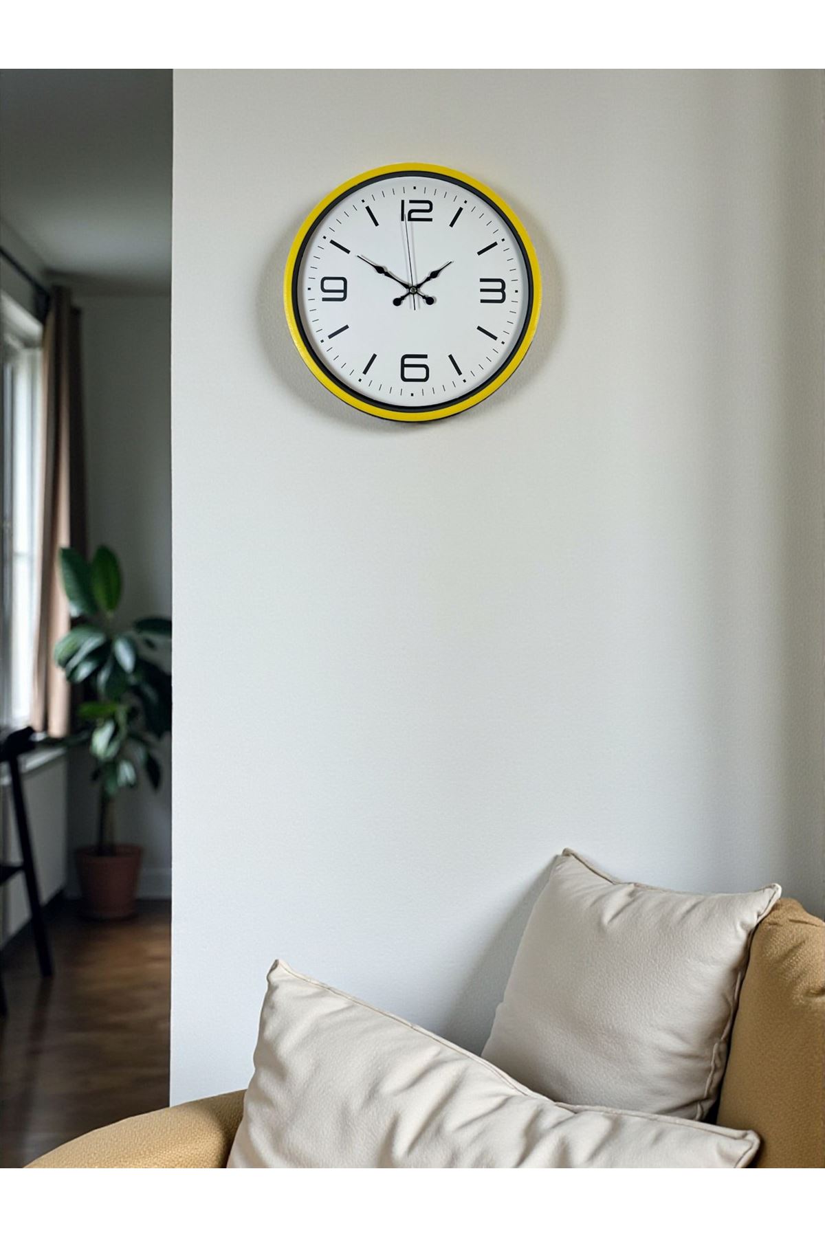 Enerjik sarı çerçevesiyle yaşam alanlarına canlılık katan 36 cm duvar saati, modern ve sade tasarımıyla her dekorasyona uyum sağlar. Geniş ve okunaklı kadranı sayesinde uzak mesafeden bile saati rahatça görebilirsiniz. Ürünümüzün önü 2 mm kalınlığında gerçek cam ile üretilmiştir; böylece hem çok daha şık bir görünüm sunar hem de uzun yıllar boyunca çizilmelere ve toza karşı dayanıklı kalır.