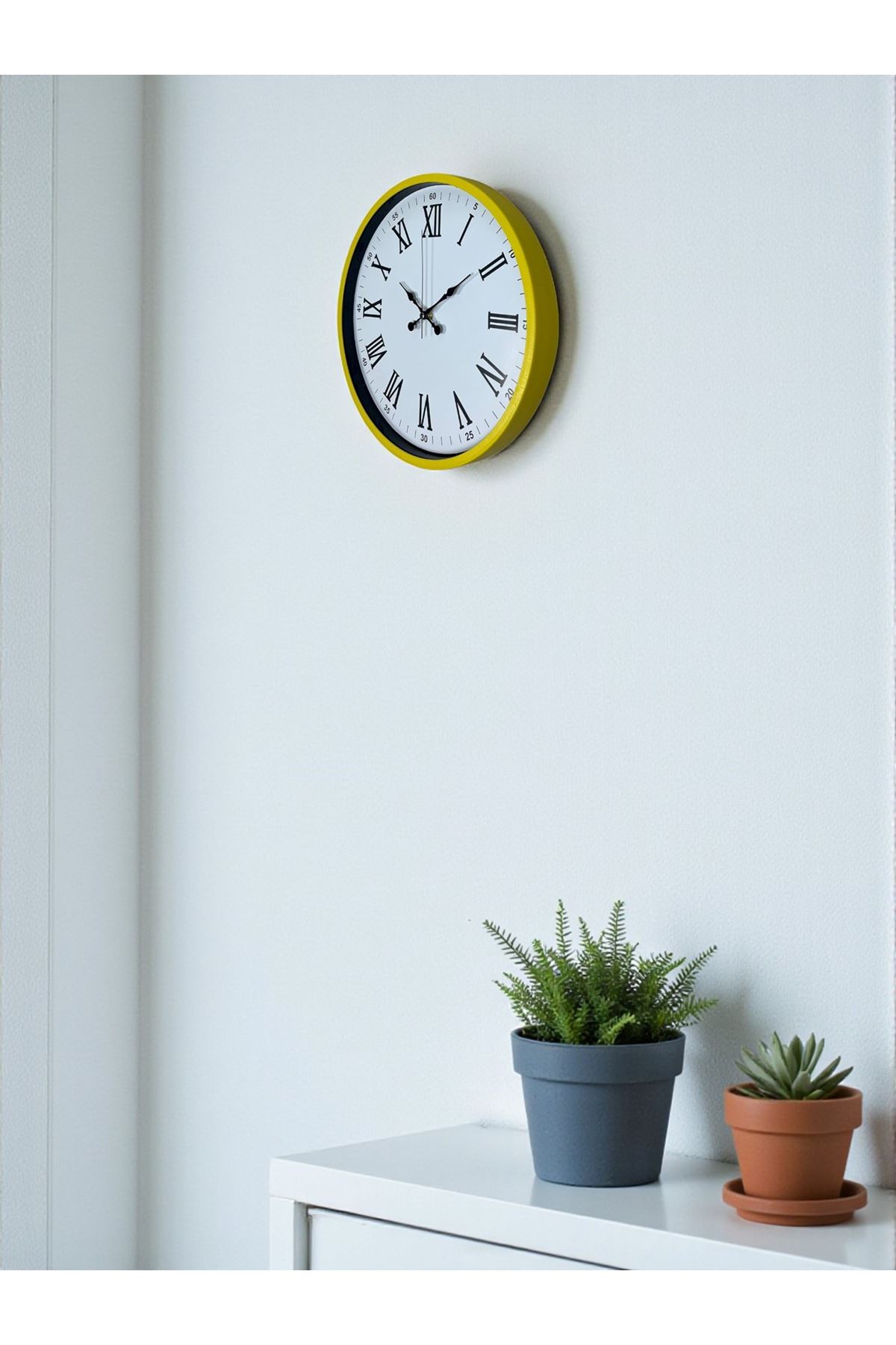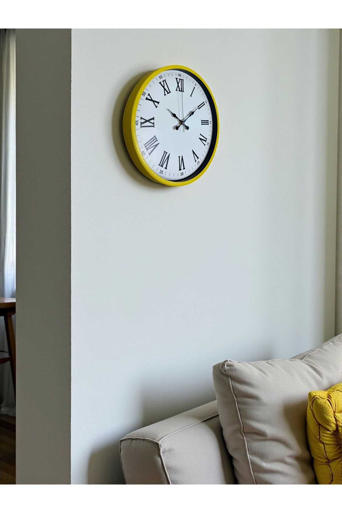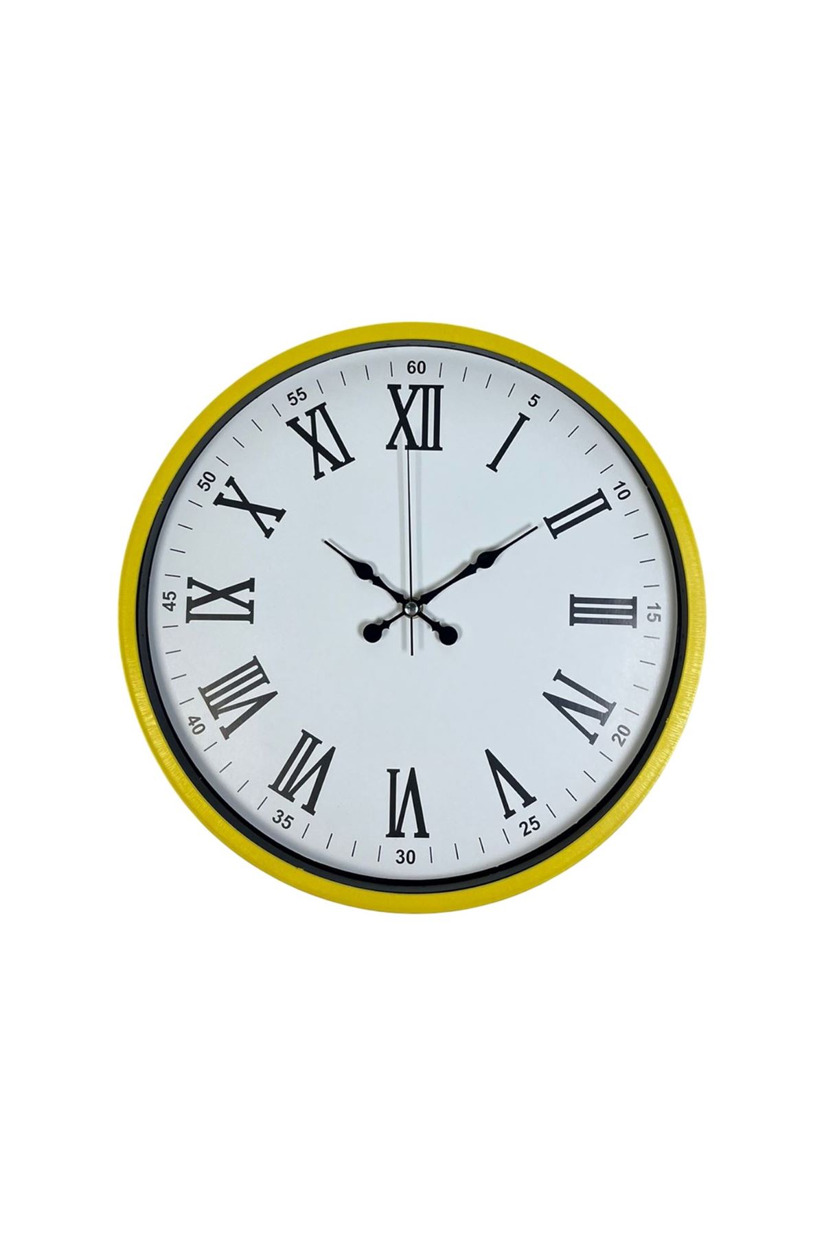 Dekorasyonunda enerji, canlılık ve şıklık arayanlar için tasarlanan 36 cm sarı duvar saati, modern tasarımı klasik detaylarla birleştiren göz alıcı bir modeldir. Sarı çerçevesi ile bulunduğu ortama dinamizm ve aydınlık bir görünüm katar. Beyaz zemin üzerine yerleştirilmiş siyah Roma rakamları ise hem estetik hem de yüksek okunabilirlik sağlar.