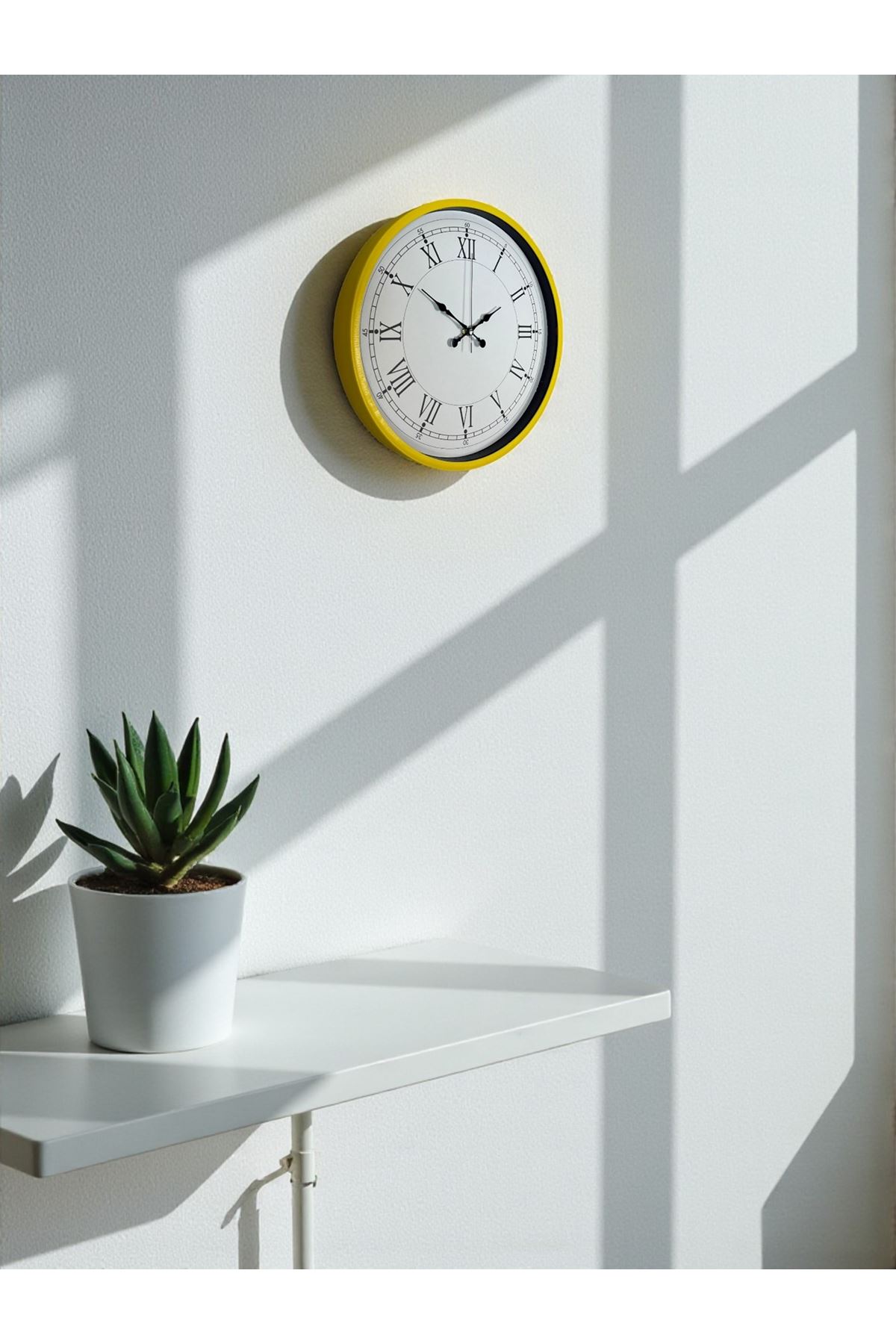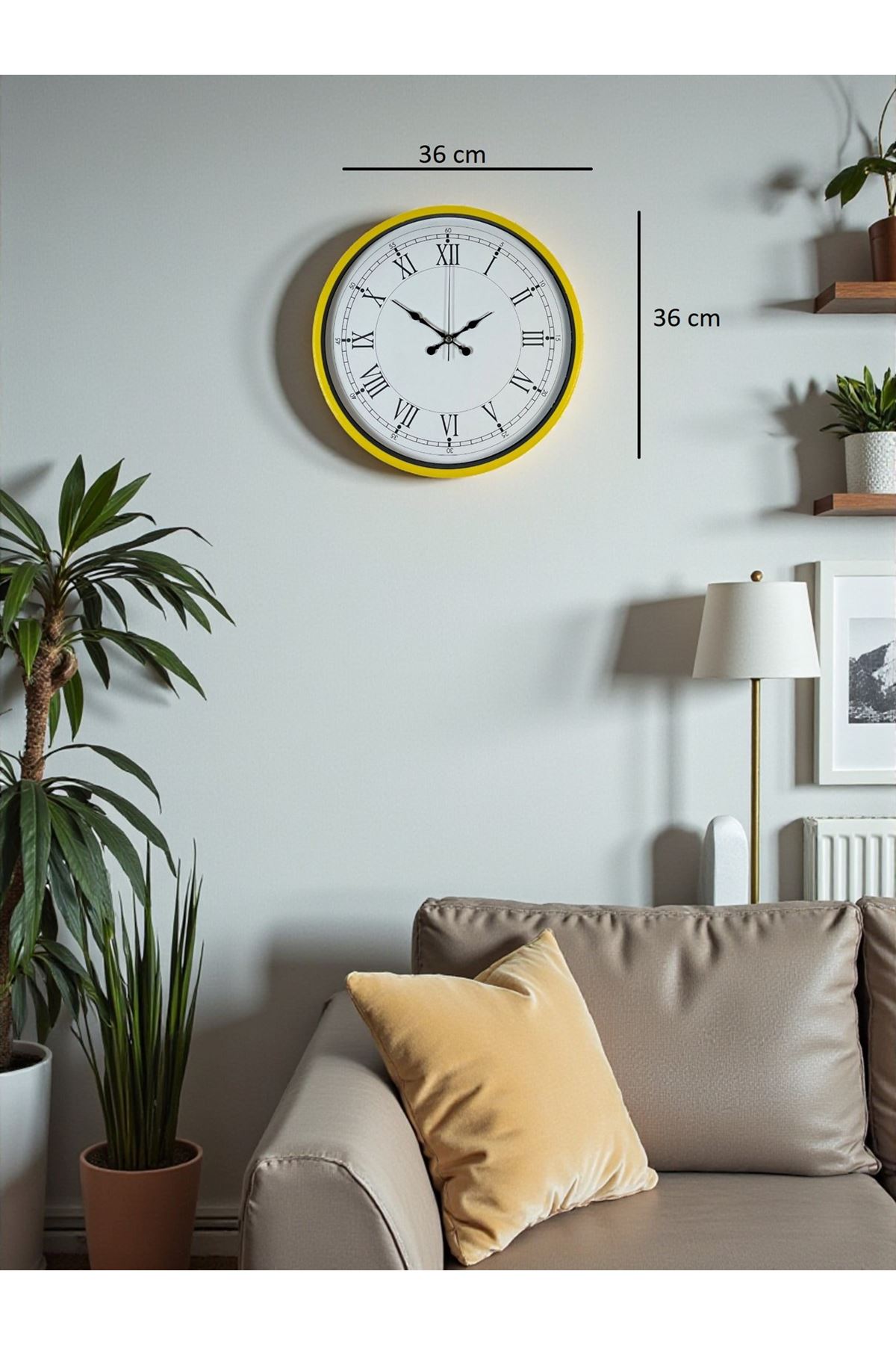 Modern dekorasyonun enerjik ve canlı dokusunu evinize taşıyan 36 cm Sarı Renk Dekoratif Duvar Saati, sade tasarımı ve dikkat çekici çerçeve rengi ile duvarlarınıza estetik bir dokunuş sağlar. Şık Roma rakamlı kadranı, zarif akrep-yelkovan tasarımı ve yüksek kaliteli baskı yüzeyi ile hem klasik hem modern tarzlara mükemmel uyum sağlar.