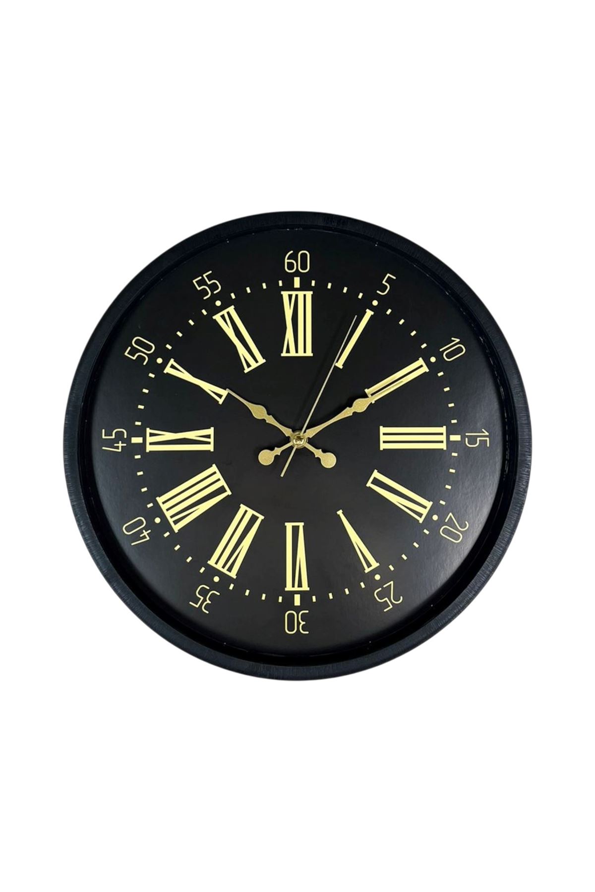 Zarif, modern ve göz alıcı bir tasarıma sahip 36 cm Siyah Renk Dekoratif Duvar Saati, yaşam alanlarınıza hem şıklık hem de güçlü bir karakter katar. Mat siyah arka plan üzerinde kullanılan altın renk Roma rakamlı kadranı sayesinde modern ve klasik tasarım anlayışını bir araya getirir. Şık akrep–yelkovan tasarımı, sade ama etkili gövdesi ve yüksek kaliteli baskı yüzeyi ile dekorasyonunuza prestijli bir hava kazandırır.