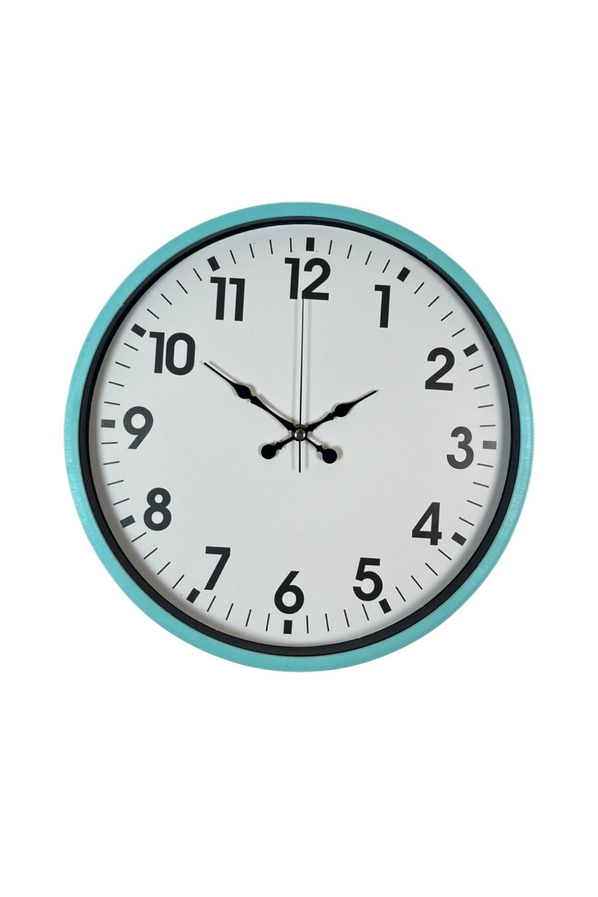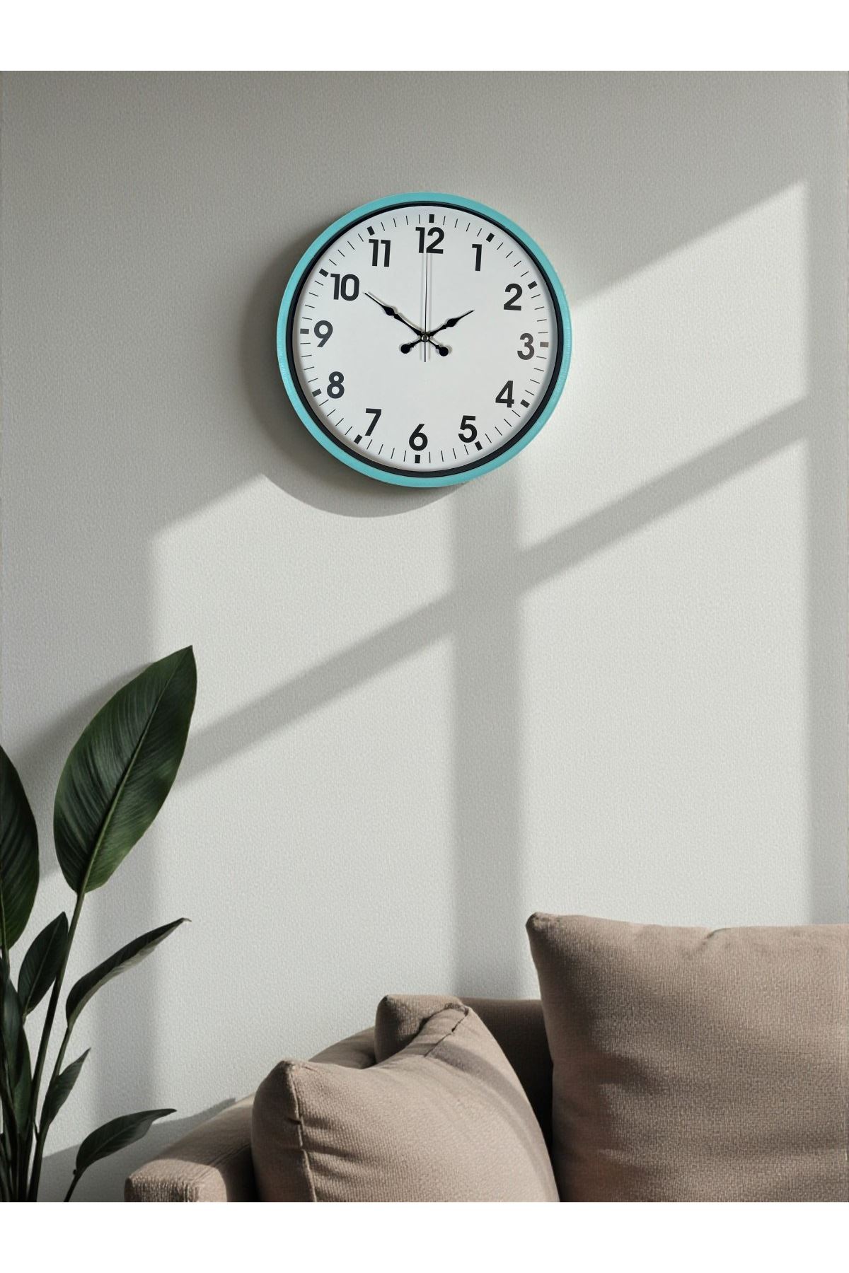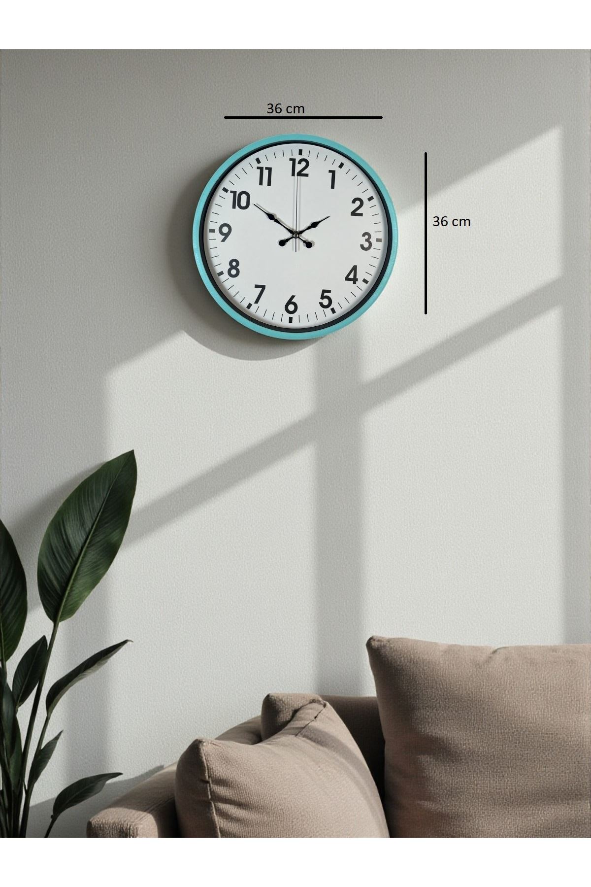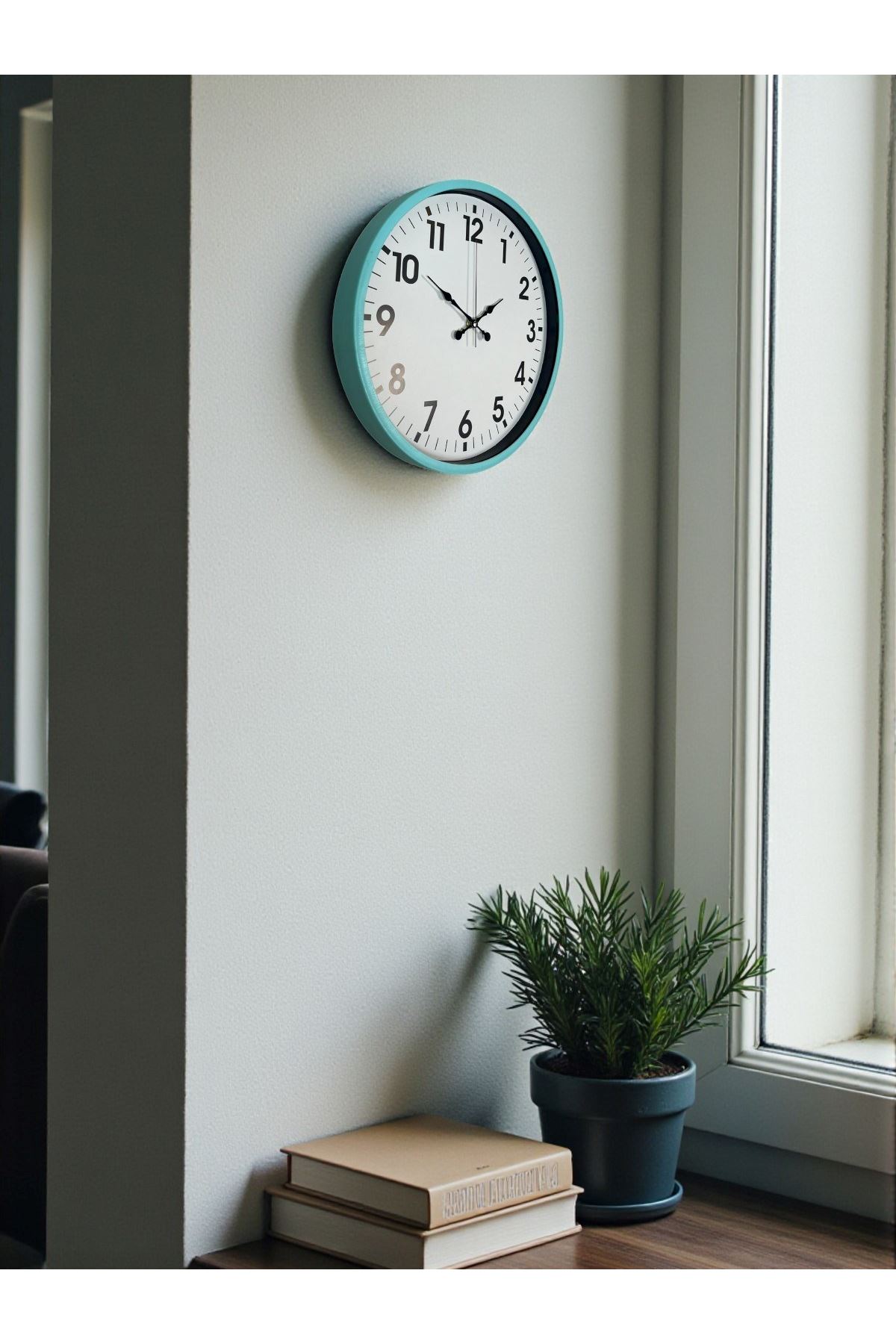 Modern, ferah ve enerjik tasarımıyla dikkat çeken 36 x 36 cm turkuaz çerçeveli duvar saati, bulunduğu ortama tazelik ve canlılık katan özel bir dekor ürünüdür. Beyaz kadranı, büyük okunaklı rakamları ve turkuaz çerçevesinin şık uyumu sayesinde ev, ofis ve çalışma alanlarına modern bir dokunuş ekler. Minimal tasarımı sayesinde her dekorasyon stiline kolayca uyum sağlar.