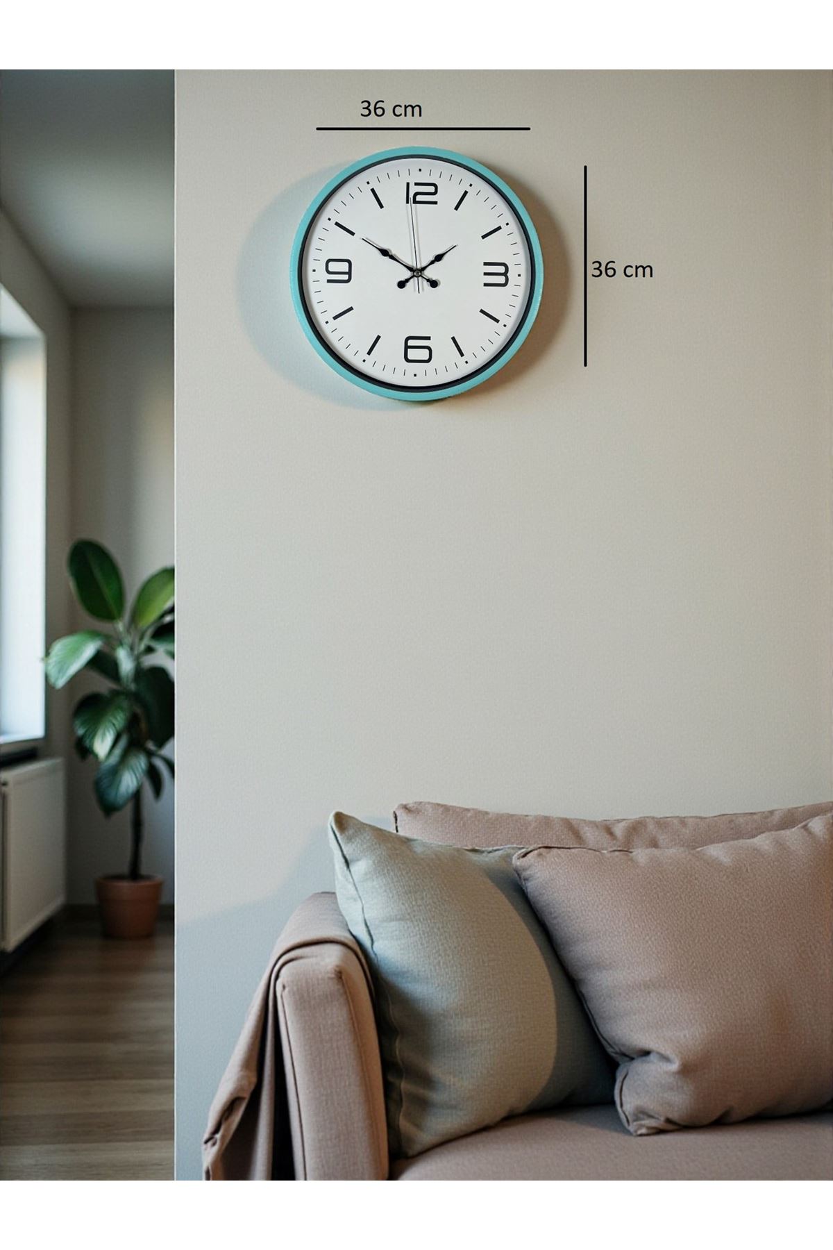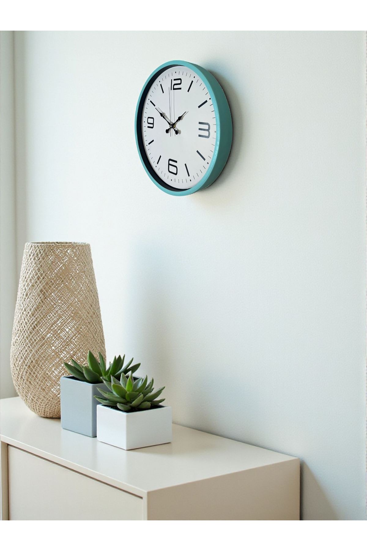 Modern çizgileri, sade kadranı ve ferahlatıcı turkuaz çerçevesi ile tasarlanan bu 36 cm duvar saati, bulunduğu ortama tazelik ve şıklık katar. Minimalist büyük rakamlı gösterimi sayesinde uzak mesafeden bile net okunabilir. Hem dekoratif hem de işlevsel bir çözüm sunan bu saat; salon, mutfak, ofis, genç odası ve çalışma alanları için mükemmel bir tamamlayıcıdır.