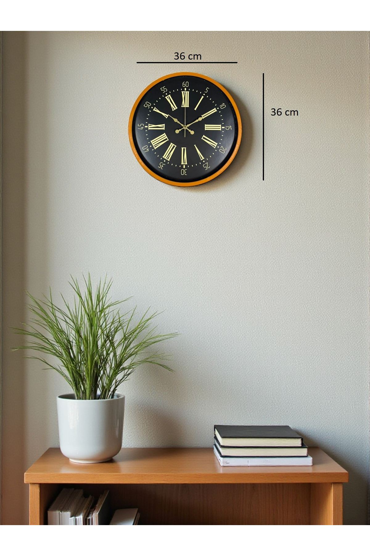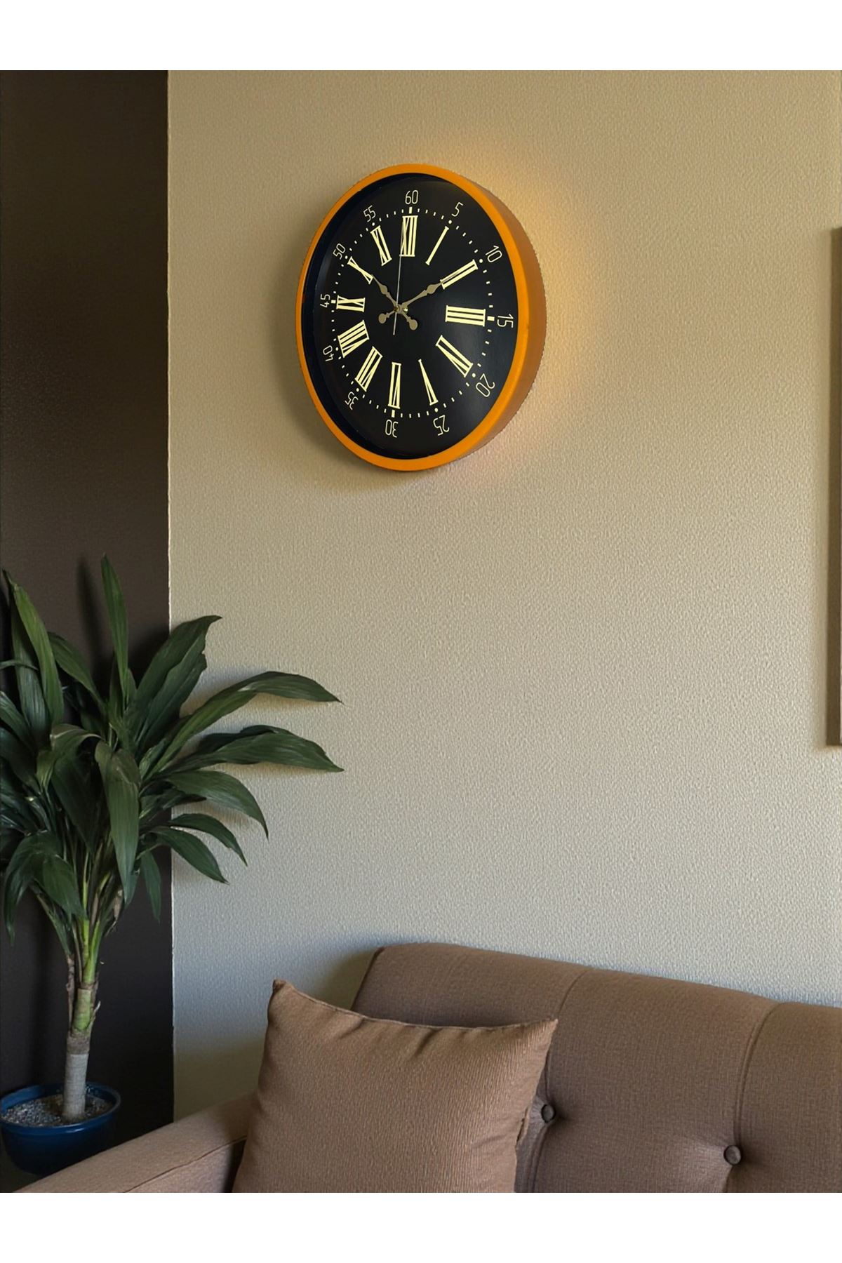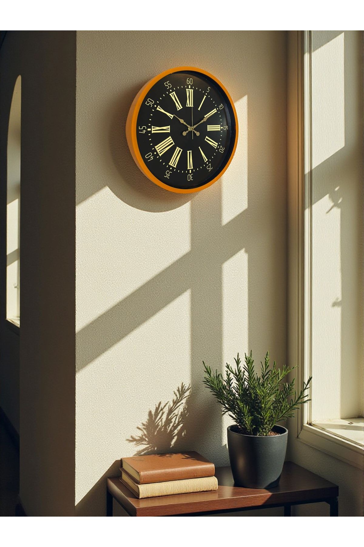 Yaşam alanlarına enerji ve modern bir görünüm katmak isteyenler için tasarlanan 36 cm Turuncu Duvar Saati, canlı renk çerçevesi ve şık siyah zemin üzerinde altın tonlu Roma rakamları ile dekorasyonda güçlü bir vurgu oluşturur. Turuncunun sıcak tonları, bulunduğu ortamda dikkat çekici bir estetik ortaya çıkarırken siyah kadranla oluşturduğu kontrast modern bir zarafet sunar.