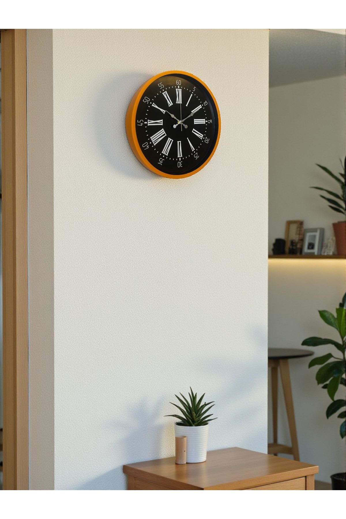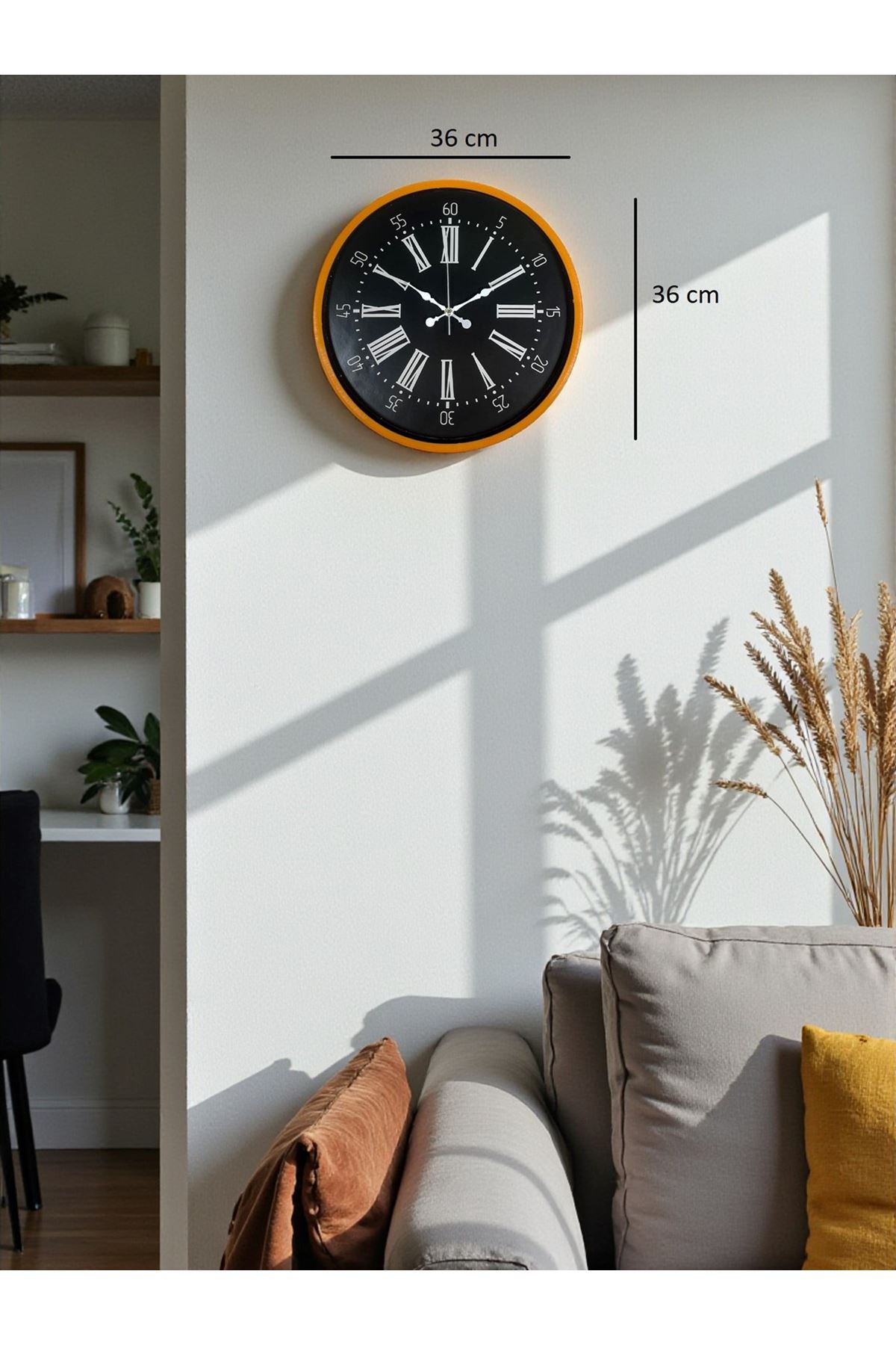 Canlı ve modern bir görünüm sunan 36 cm Turuncu Duvar Saati, enerjik rengi ve şık kadran tasarımı ile bulunduğu her ortamda dikkat çeken bir dekoratif parça hâline gelir. Turuncu çerçevenin siyah zemin ve beyaz Roman rakamlarıyla oluşturduğu kontrast, saatin hem modern hem klasik dekorasyonlarla uyumunu güçlendirir. Genç odaları, salonlar, ofisler, kafeler ve çalışma alanları için ideal bir tamamlayıcıdır.