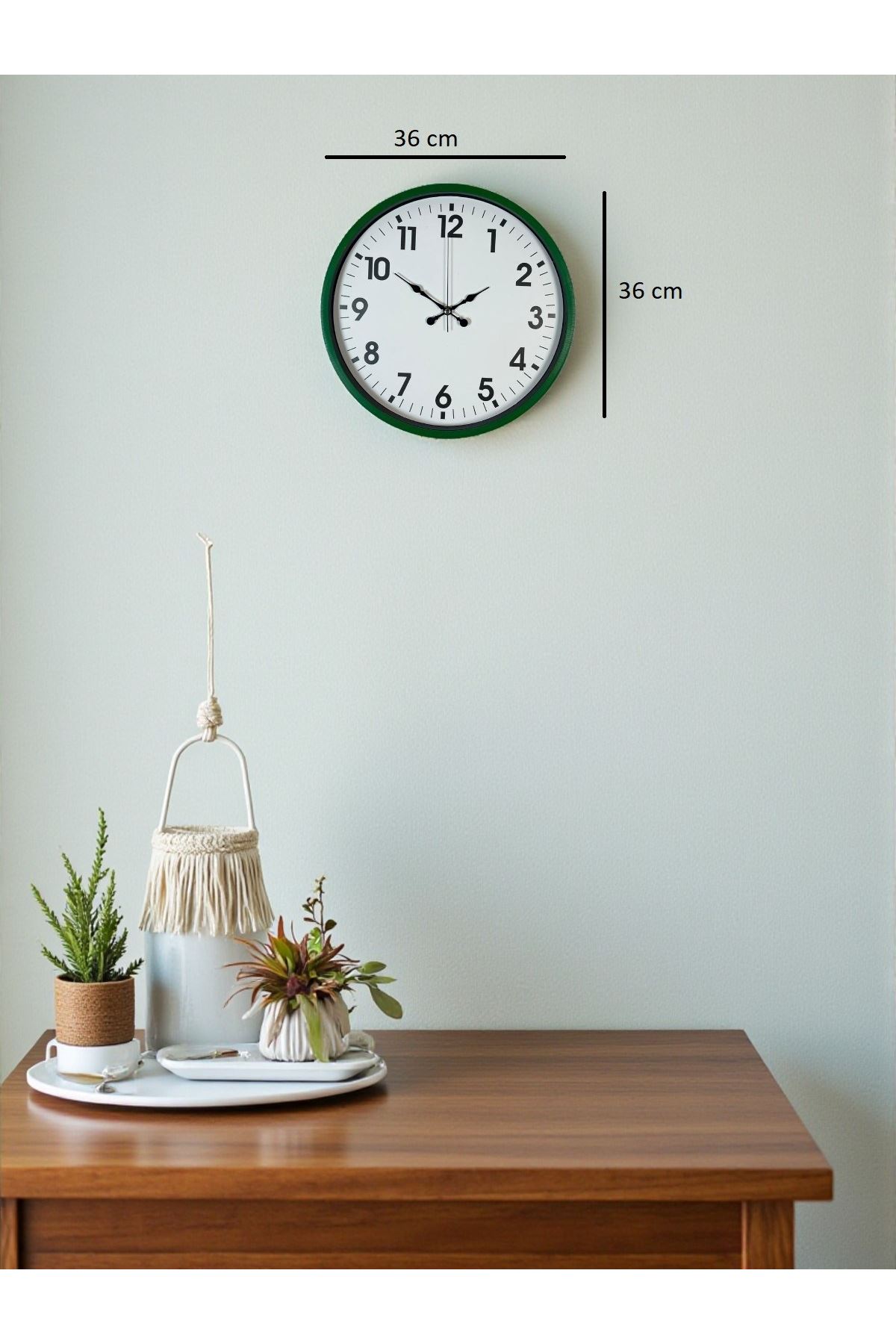36 x 36 cm yeşil çerçeveli duvar saati, sade ve modern tasarımıyla yaşam alanlarına ferah ve canlı bir dokunuş katan şık bir dekor ürünüdür. Yeşil çerçeve rengi, hem doğal hem de modern dekorasyon tarzlarına mükemmel bir uyum sağlar. Beyaz kadranı ve büyük, okunaklı rakamları sayesinde saati uzak mesafeden bile kolayca görmek mümkündür.