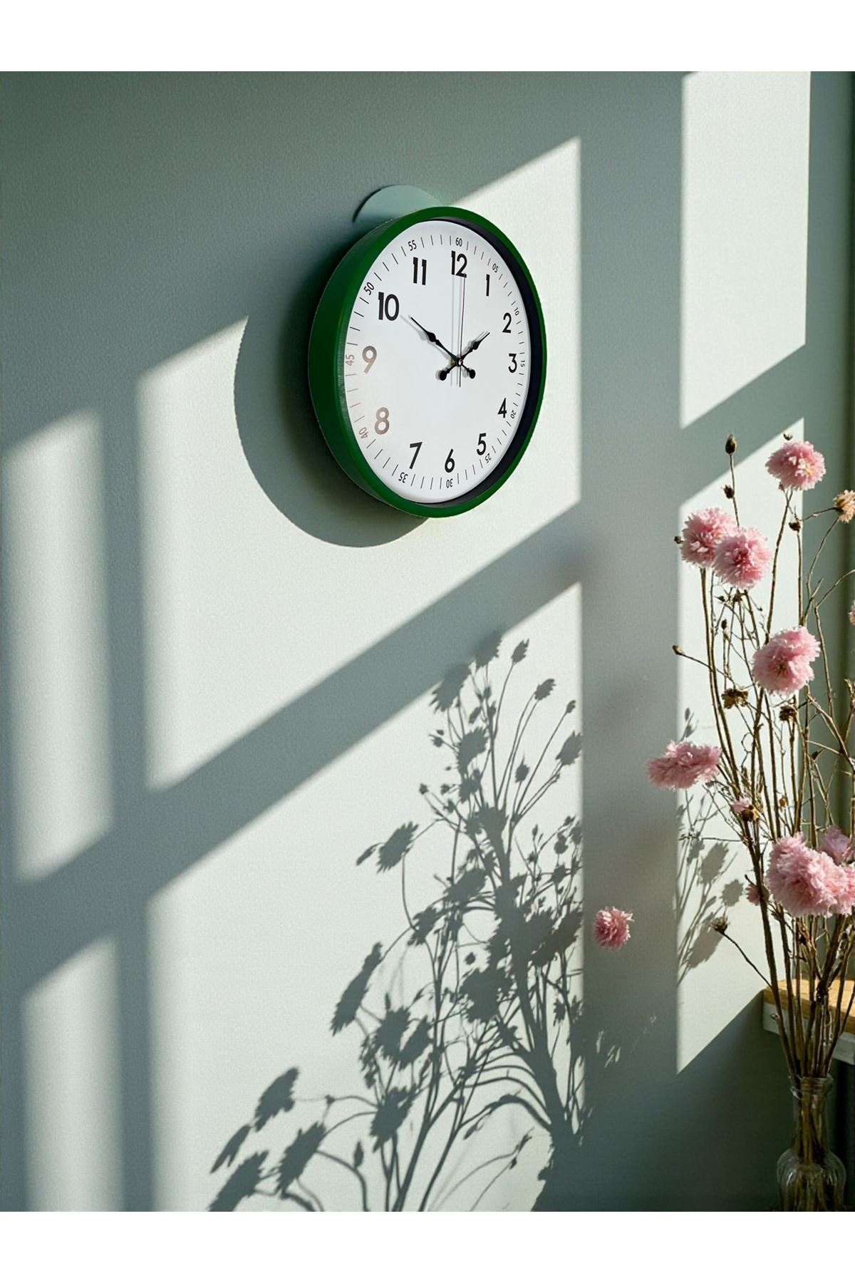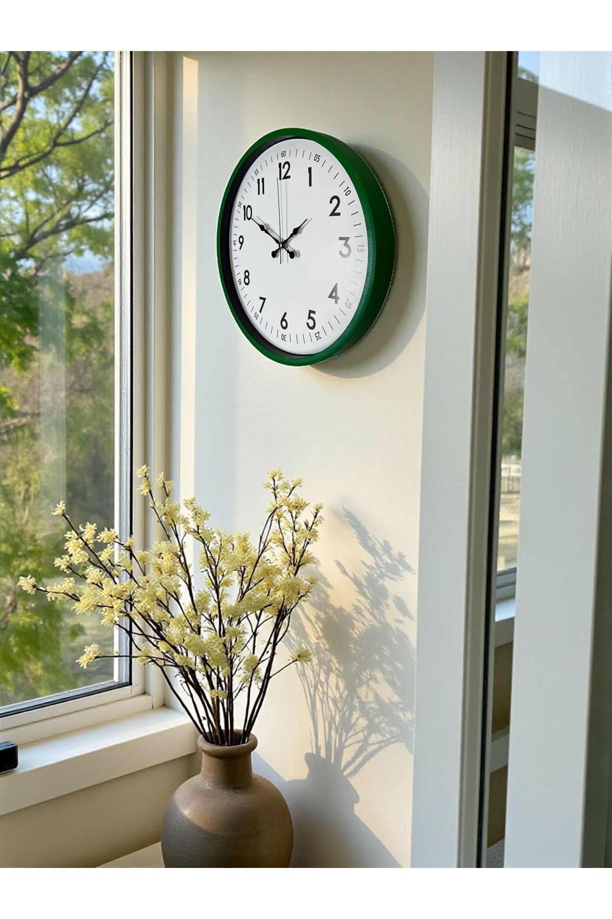 Doğanın ferahlığını ve modern tasarımı bir araya getiren bu 36 cm yeşil duvar saati, yaşam alanlarına taze ve canlı bir dokunuş katmak isteyenler için ideal bir seçimdir. Yeşil çerçevesi sayesinde mekânlara enerji, sıcaklık ve modern bir hava katar. Geniş beyaz kadranı, büyük siyah rakamları ve detaylı dakika göstergeleri (05, 10, 15...) sayesinde saati uzaktan dahi net bir şekilde okumayı kolaylaştırır. Hem dekoratif hem de fonksiyonel bir duvar saati arayanlar için mükemmel bir modeldir.