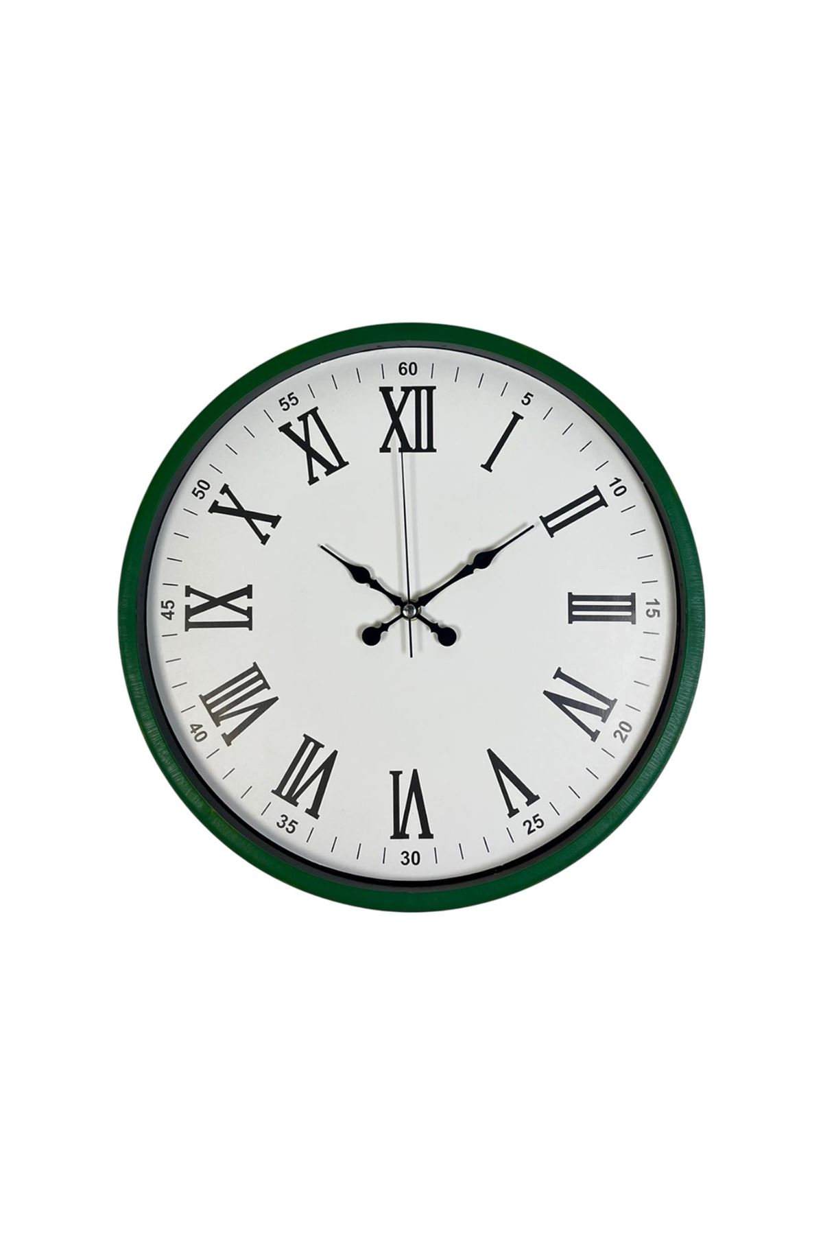 Doğanın taze ve canlı tonunu yaşam alanlarına taşıyan 36 cm yeşil duvar saati, klasik Roma rakamlı tasarımı ve modern çerçeve görünümüyle şıklığı bir arada sunar. Saatin ön yüzeyi 2 mm kalınlığında gerçek cam ile kaplanmıştır. Bu gerçek cam yüzey, plastik camlı modellere göre çok daha dayanıklı olup yıllar geçse bile sararma, matlaşma veya çizilme problemi yaşatmaz. Net görüntü sunması sayesinde kadranın okunabilirliğini artırır ve ürüne premium bir kalite hissi kazandırır.