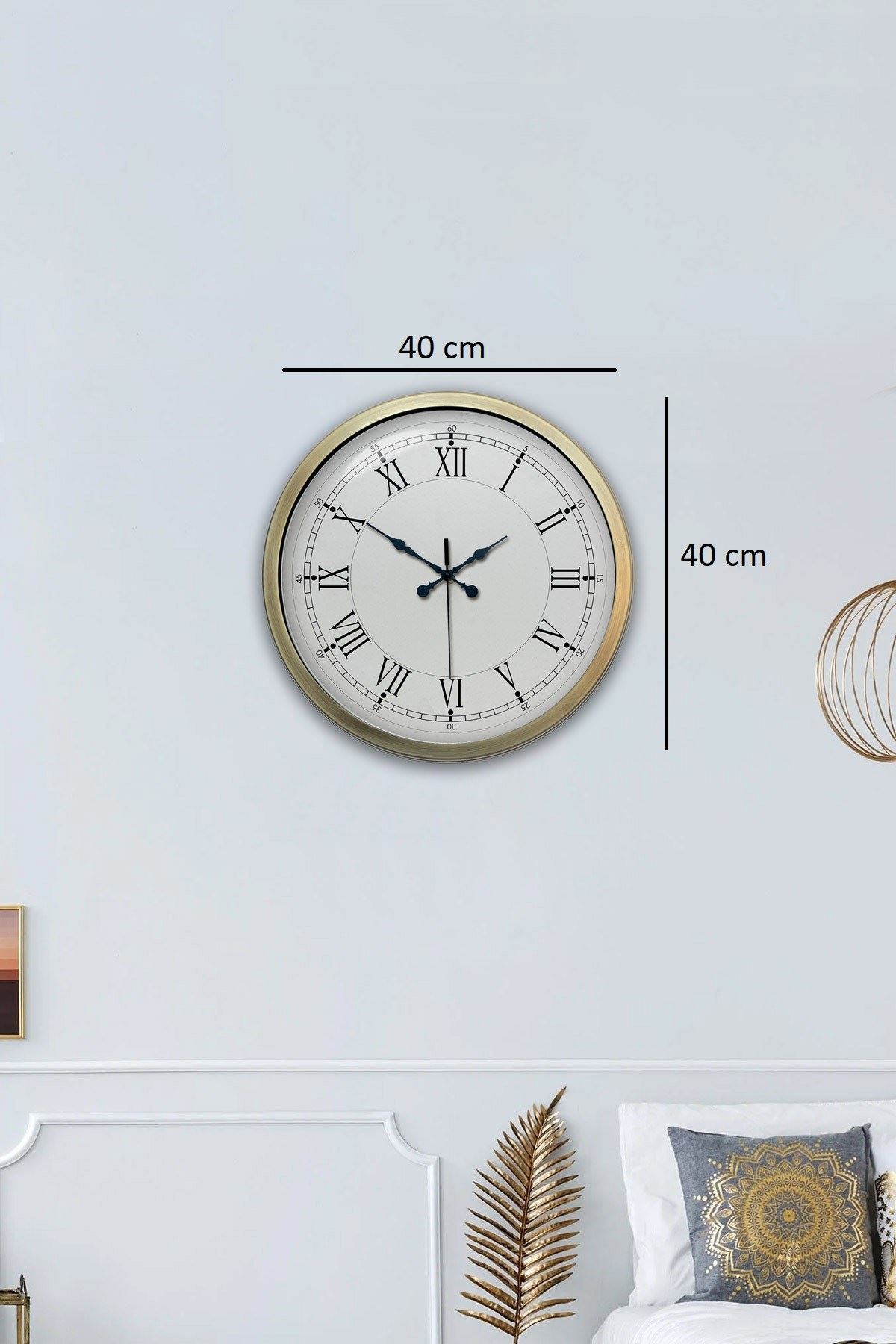 40 cm çapıyla duvarda güçlü ve dikkat çekici bir duruş sergileyen bu eskitme duvar saati, klasik dekorasyon severlerin vazgeçilmezi olacak nitelikte. Beyaz zemin üzerinde dengeli şekilde yerleştirilmiş Roma rakamları, hem okunabilirliği artırır hem de ürüne lüks bir görünüm kazandırır.