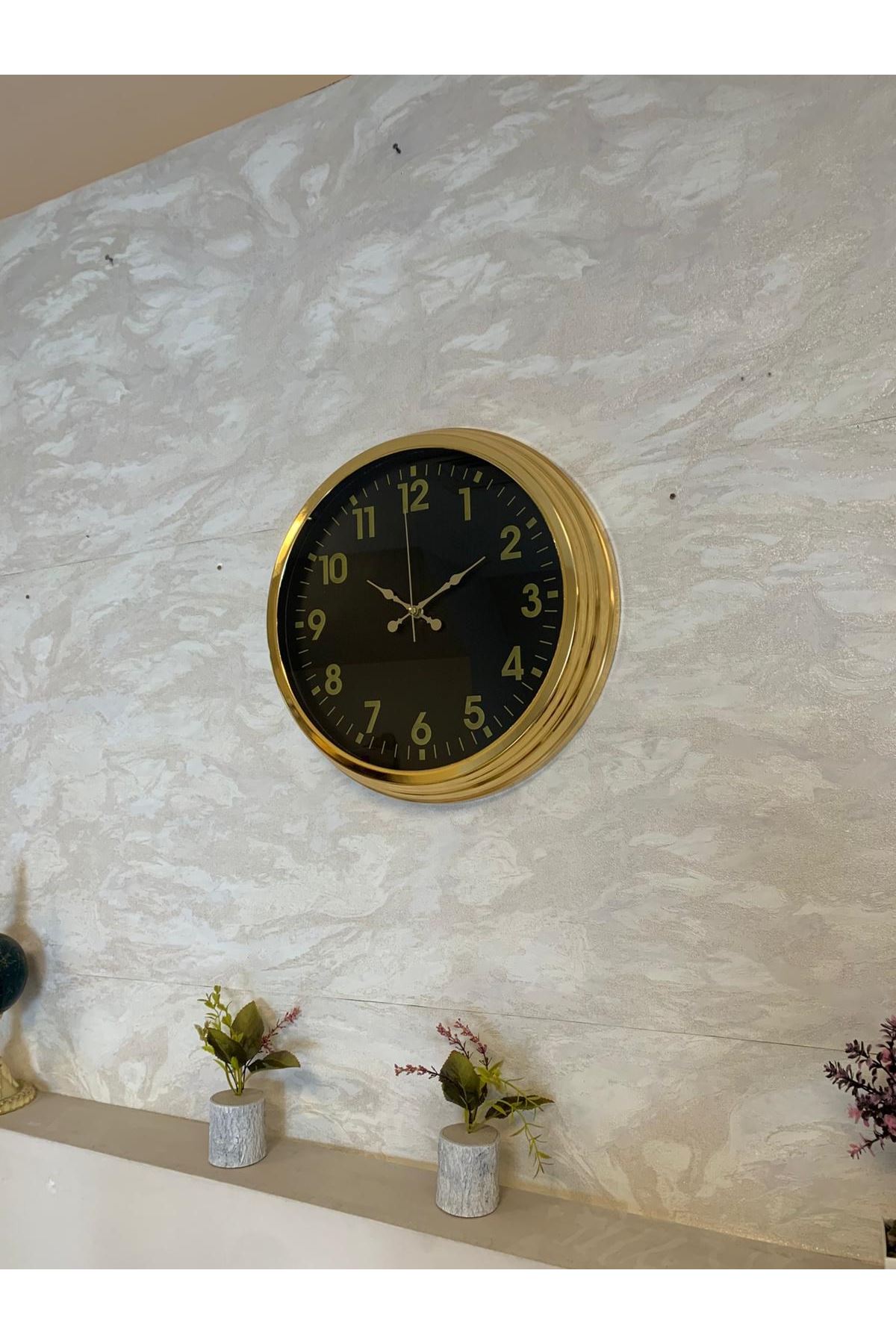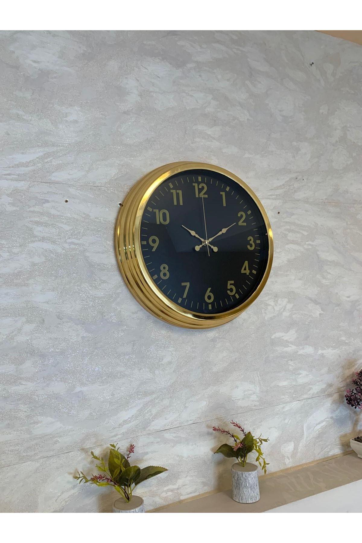 Gold rengin siyah kadranla buluştuğu bu elegan tasarım, bulunduğu mekâna anında değer katar ve dekorasyonunuzu tamamlayan şık bir duvar objesine dönüşür. Hem büyük hem de dikkat çekici olduğu için duvarınızda tek başına bile etkileyici bir dekor ürünü olarak sergilenebilir.