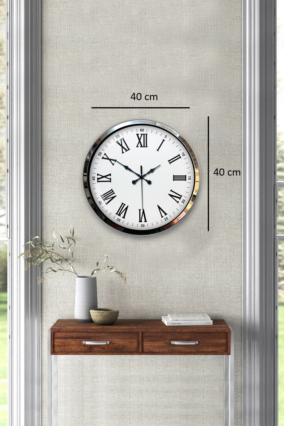 Sessiz çalışan akar saniye (sweep) mekanizması, tıkırtı sesi olmadan çalışarak yatak odası, bebek odası, çalışma alanı ve ofis gibi sessizliğin önemli olduğu ortamlar için ideal konfor sunar. 40 cm çapındaki geniş yüzeyi sayesinde hem dikkat çekici hem de dengeli bir dekoratif unsur olarak duvarlarda etkileyici bir duruş sergiler.