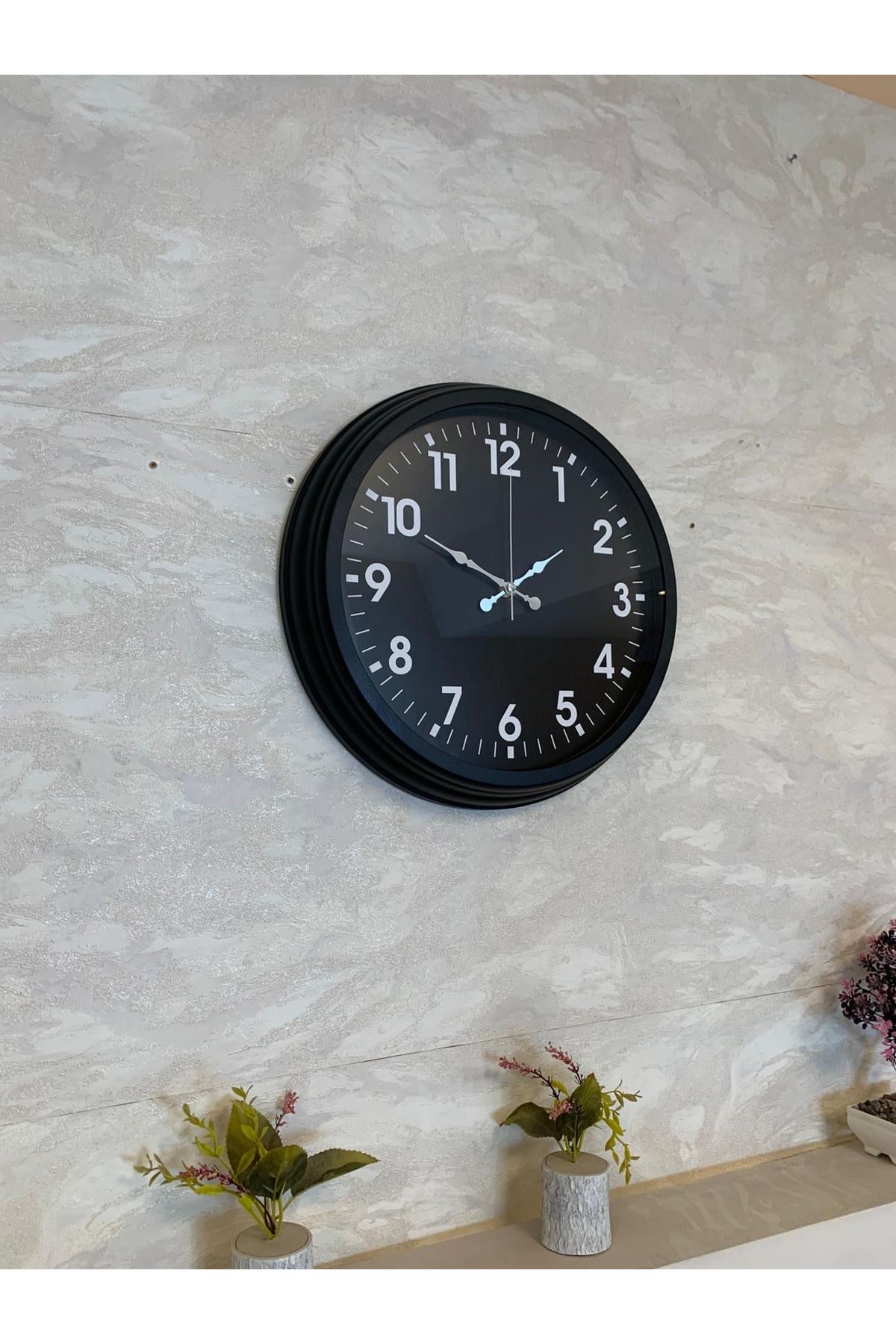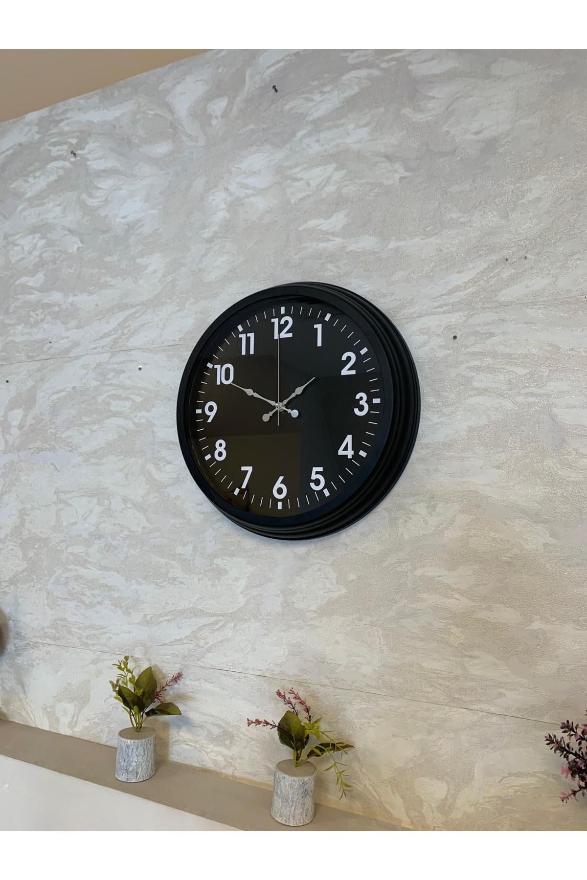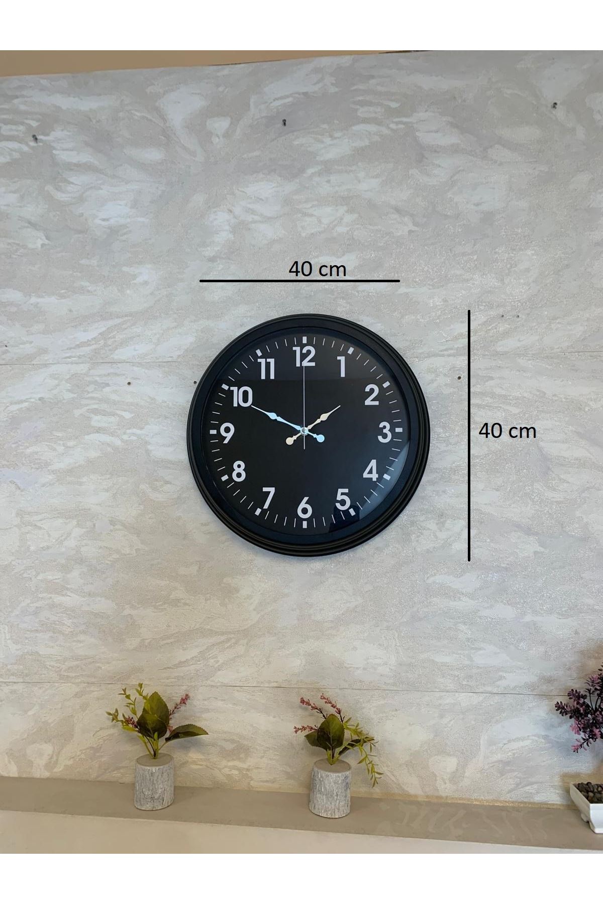 Zarif ve modern tasarımıyla dikkat çeken 40 cm Siyah Duvar Saati, yaşam alanlarında hem şıklığı hem fonksiyonelliği bir arada sunmak isteyenler için ideal bir modeldir. Tamamen siyah tasarımı, beyaz büyük rakamlar ve sade çizgilerle birleşerek güçlü bir kontrast yaratır. Bu sayede saat uzaktan bile net bir şekilde okunabilir ve duvarda dekoratif bir vurgu noktası oluşturur.