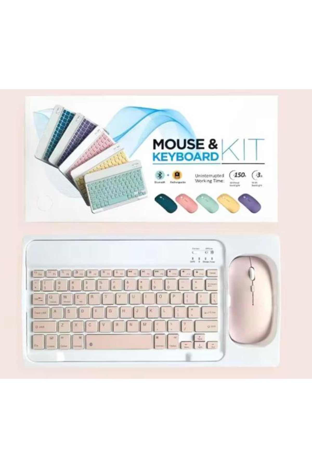 ZR20Km Pembe Kablosuz Klavye Mouse Set