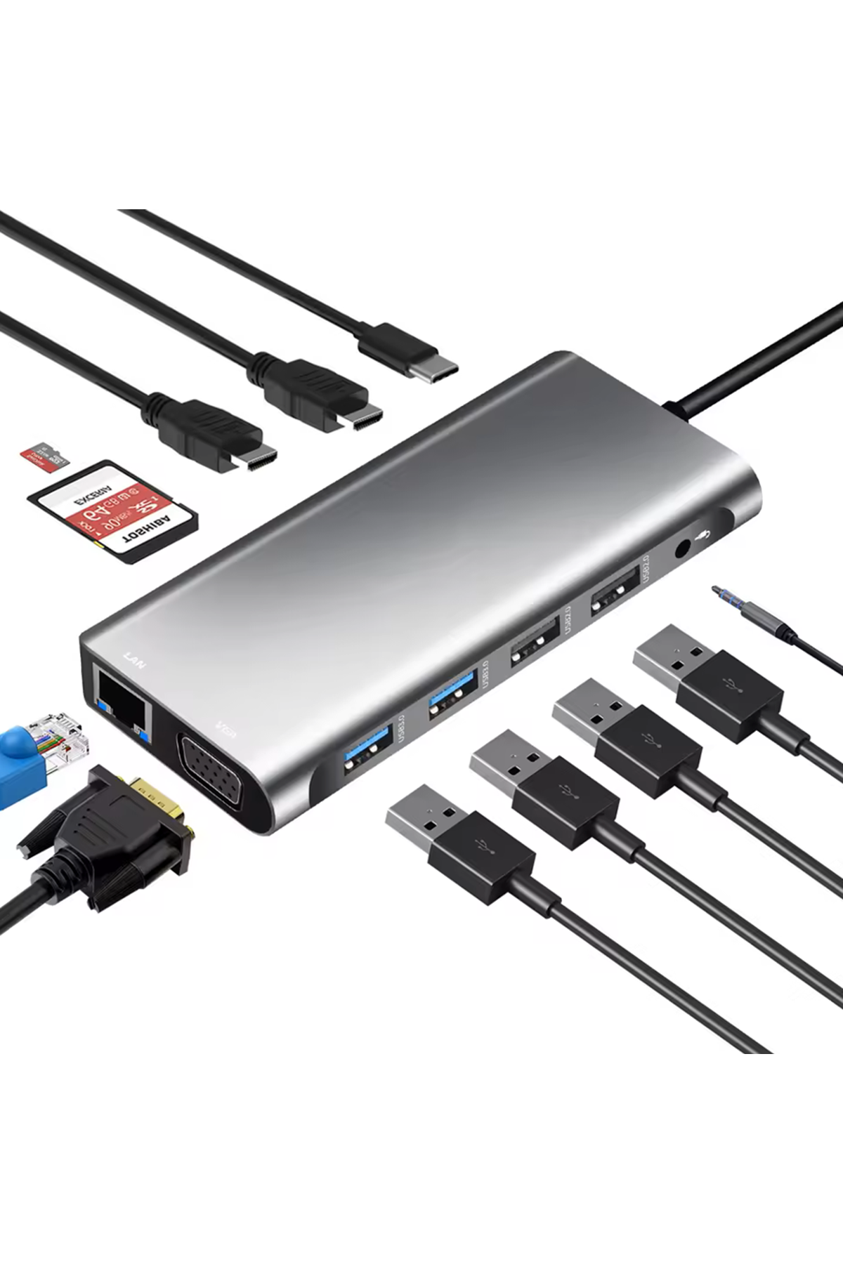 12 Farklı Bağlantı Seçeneği – Usb Type-C Portu Üzerinden 12 Farklı Bağlantı Imkanı Sunarak, Çoklu Cihaz Bağlantılarını Bir Arada Yönetmenizi Sağlar.Çift Hdmi Çıkışı (4k) – İki Farklı 4k Hdmi Çıkışı Ile Aynı Anda Iki Ekran Kullanabilir, Geniş Ekranlar Üzerinden Yüksek Çözünürlükte Içerik Izleyebilir Veya Çalışabilirsiniz.Usb-A Ve Usb-C Portları – Usb-A Portları Üzerinden Klavye, Fare, Flash Bellek Gibi Cihazları Bağlayabilirsiniz. Ayrıca Usb-C Portu Ile Hızlı Veri Aktarımı Yapabilirsiniz.Ethernet Portu – Sabit Internet Bağlantısı Için Ethernet Portu Sayesinde Hızlı Ve Güvenilir Bir Bağlantı Elde Edebilirsiniz.Sd Ve Microsd Kart Yuvası – Fotoğraf, Video Ve Diğer Verilerinizi Hızlı Bir Şekilde Aktarabileceğiniz Sd Ve Microsd Kart Yuvası Desteği Sunar.Usb Pd (Power Delivery) – Cihazınızın Hızlı Bir Şekilde Şarj Edilmesini Sağlayan Power Delivery Desteği Ile Yüksek Güç Aktarımı Sağlar.Vga Çıkışı – Eski Model Monitör Ve Projektörler Için Vga Çıkışı Ile Bağlantı Sağlama Imkanı.Kompakt Ve Taşınabilir Tasarım – Hafif, Şık Ve Taşınabilir Yapısı Ile Her Ortamda Rahatlıkla Kullanılabilir. Seyahatlerde Veya Ofislerde Kolayca Taşıyabilirsiniz.Yüksek Hızda Veri Aktarımı – Usb 3.0 Ile Hızlı Veri Transferi Sağlar, Büyük Dosyaları Kolayca Aktarabilirsiniz.Uyumlu Cihazlar – Usb Type-C Portu Bulunan Tüm Cihazlarla Uyumludur. Macbook, Chromebook, Akıllı Telefonlar, Tabletler Ve Diğer Type-C Destekli Cihazlar Ile Çalışır.Hdmi 2.0 Ve 4k Destek – Hem Video Hem De Ses Aktarımı Yüksek Kaliteli 4k Çözünürlük Ile Yapılır, Böylece Sinema Veya Oyun Deneyiminizi Yüksek Kalite Ile Yaşarsınız.