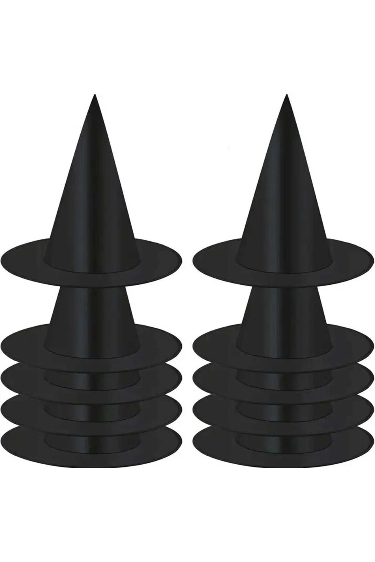 8 Adet Siyah Cadı Şapkası – Yetişkin ve Çocuk Kostüm Aksesuarı Polyester