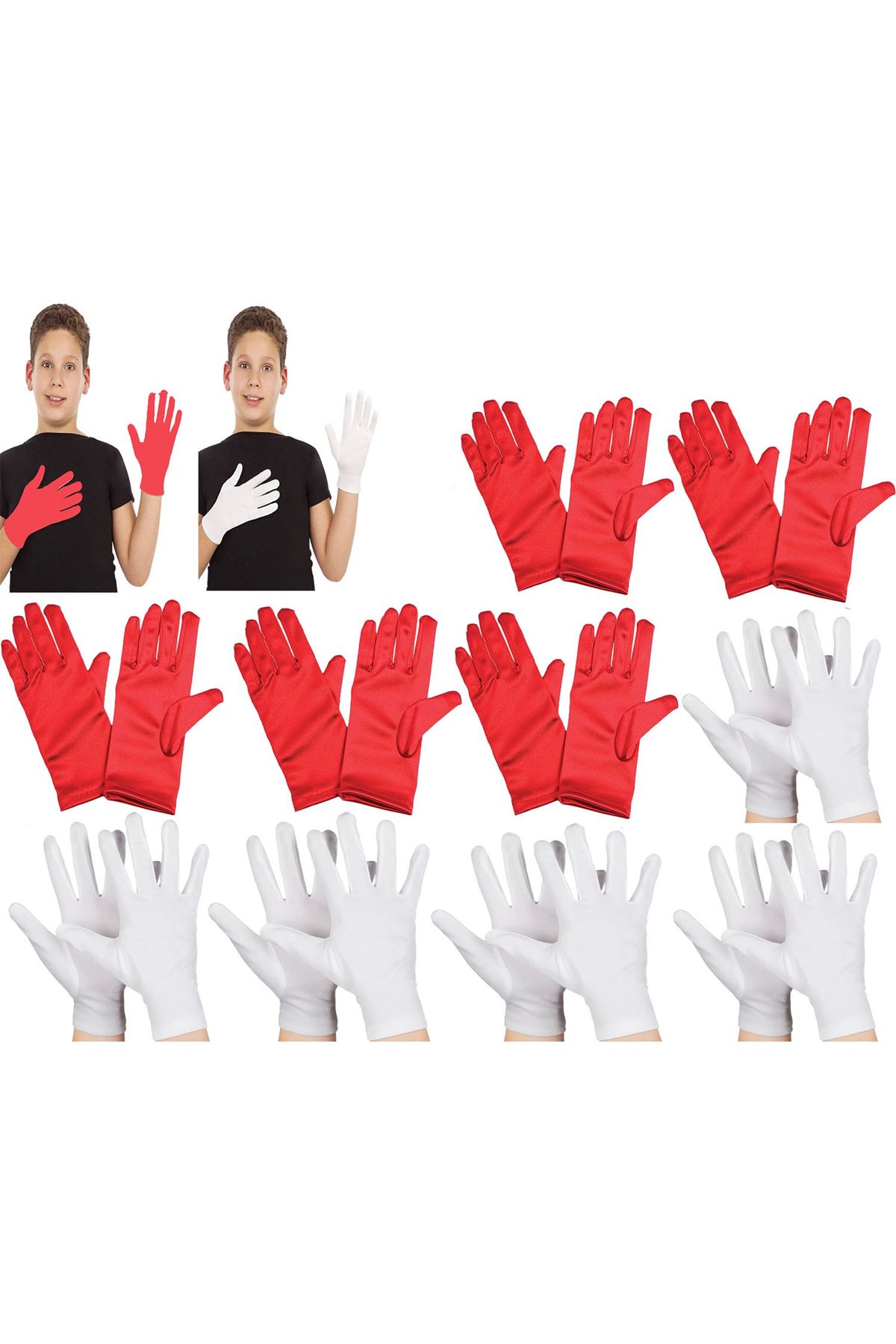 Çocuk Pandomim ve Gösteri Eldiven Seti – 5 Çift Beyaz & 5 Çift Kırmızı