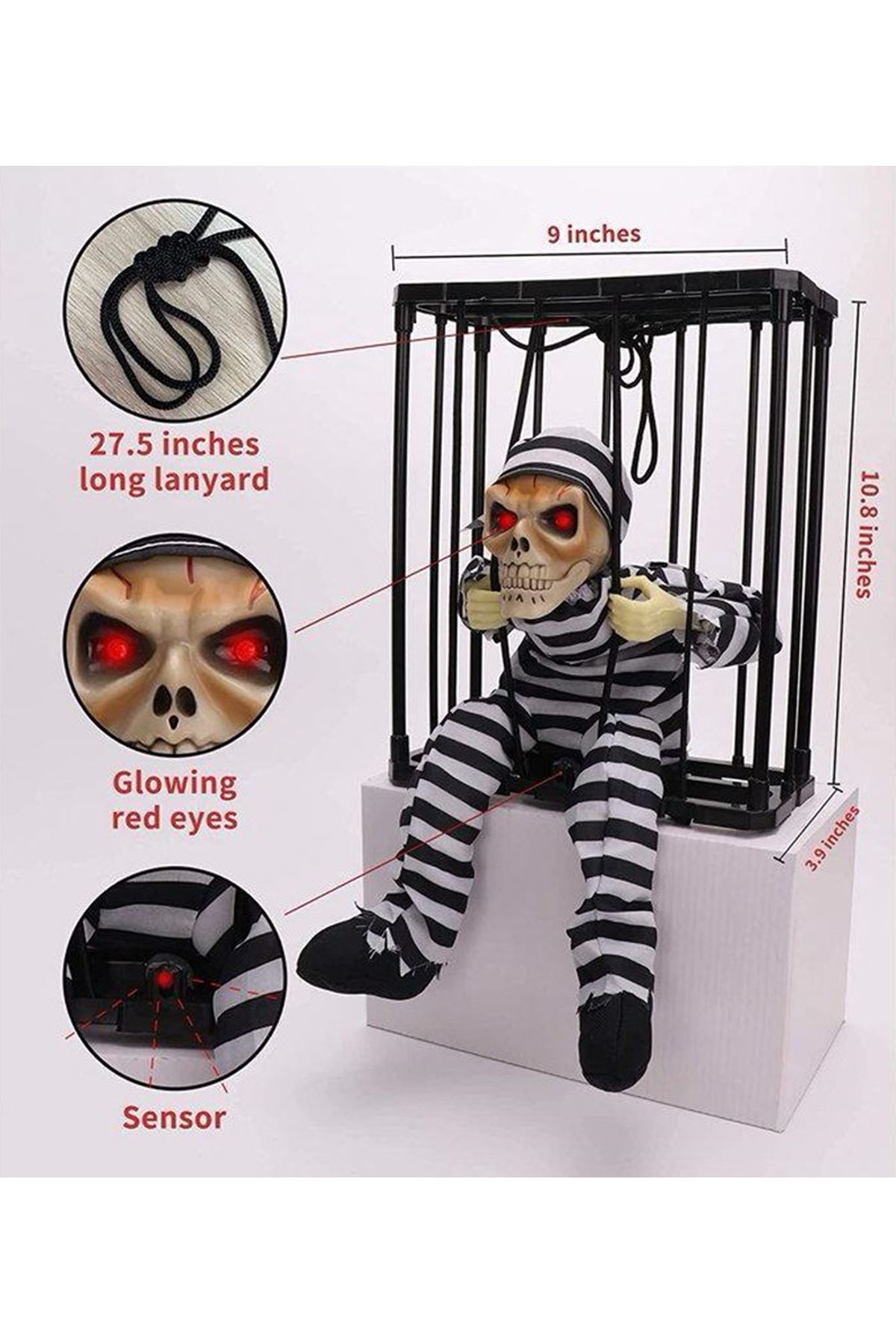 Hareketli Sesli Sensörlü Mahkum Görünümlü Kuru Kafa İskelet DekorasyonÜrün Ölçüsü : 22x27 CmÜrün Sensörlüdür , Herhangi Bir Ses Algıladığında Çalışmaya BaşlarÜrün Pil Ile Çalışmaktadır
