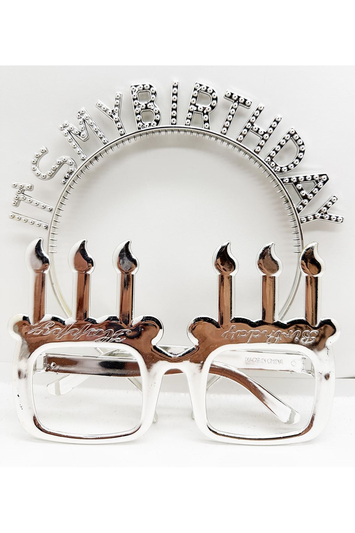 İt's My Birthday Yazılı Taç Ve Mum Şekilli Gözlük Seti Gümüş Renk