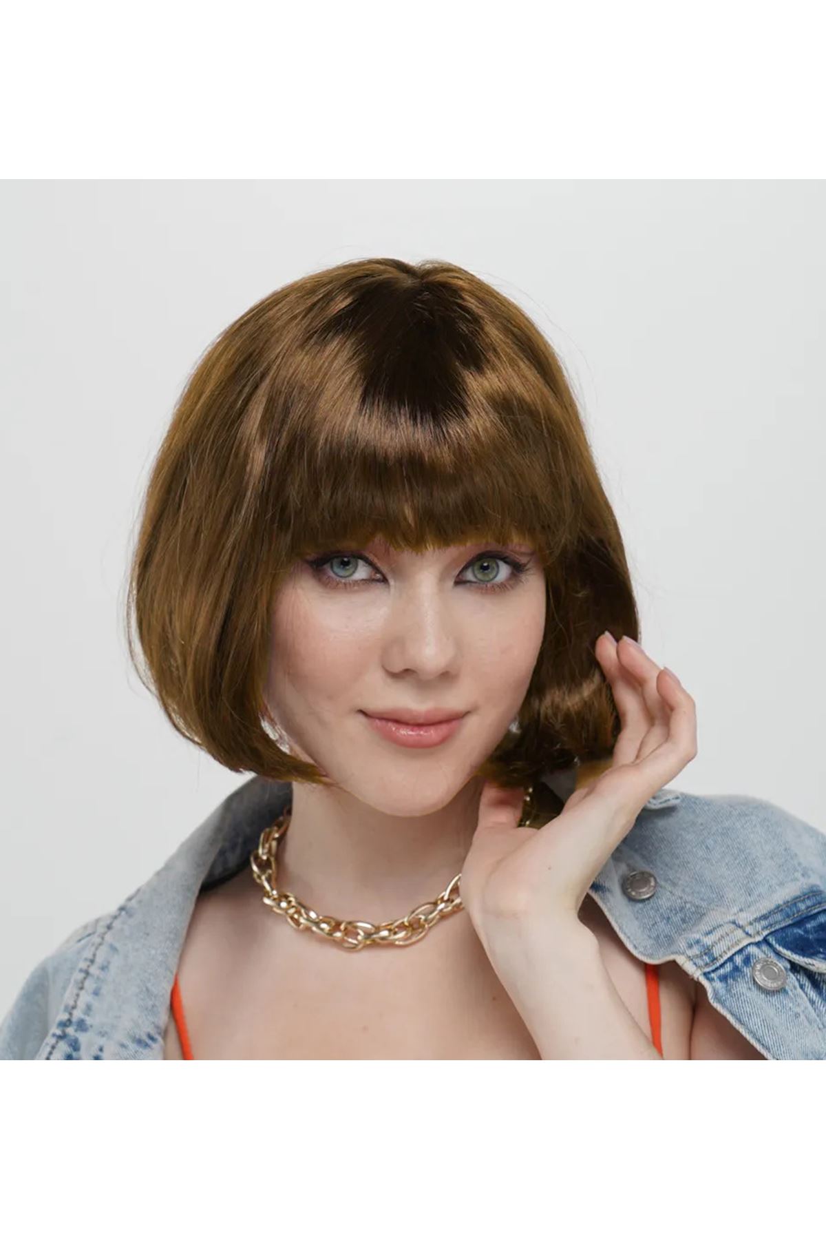 Bu peruk, canlı ve cesur Kahve rengi ile dikkat çekici bir görünüme sahiptir. Düz kesimi ve kısa oluşu ile modern ve şık bir tarz sunar.
