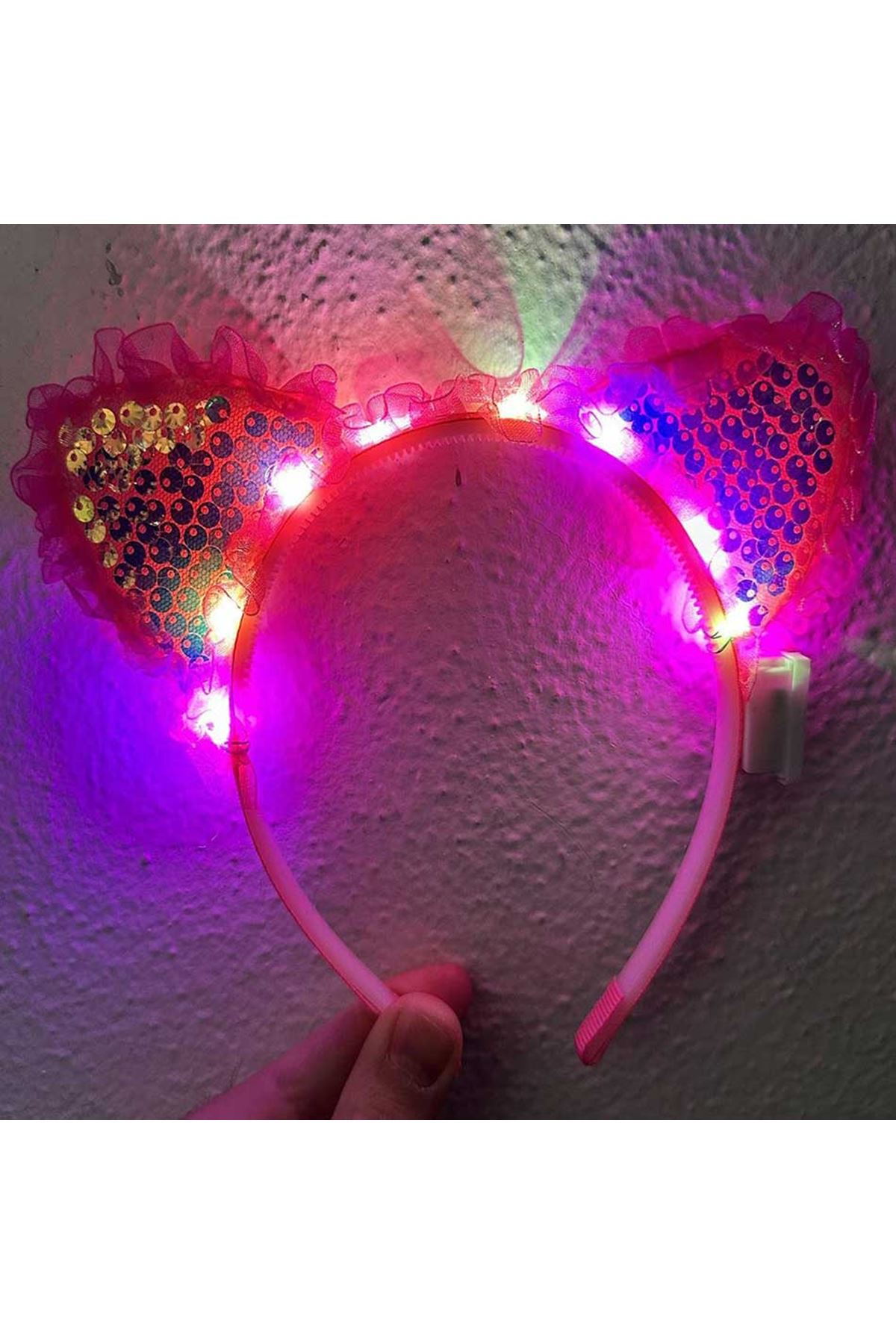 Eğlencenin Ve Şıklığın Bir Araya Geldiği Kenarları Dantelli Fuşya Pullu Payetli Led Işıklı Kedi Kulak Taç Ile Partilerin Yıldızı Olun!