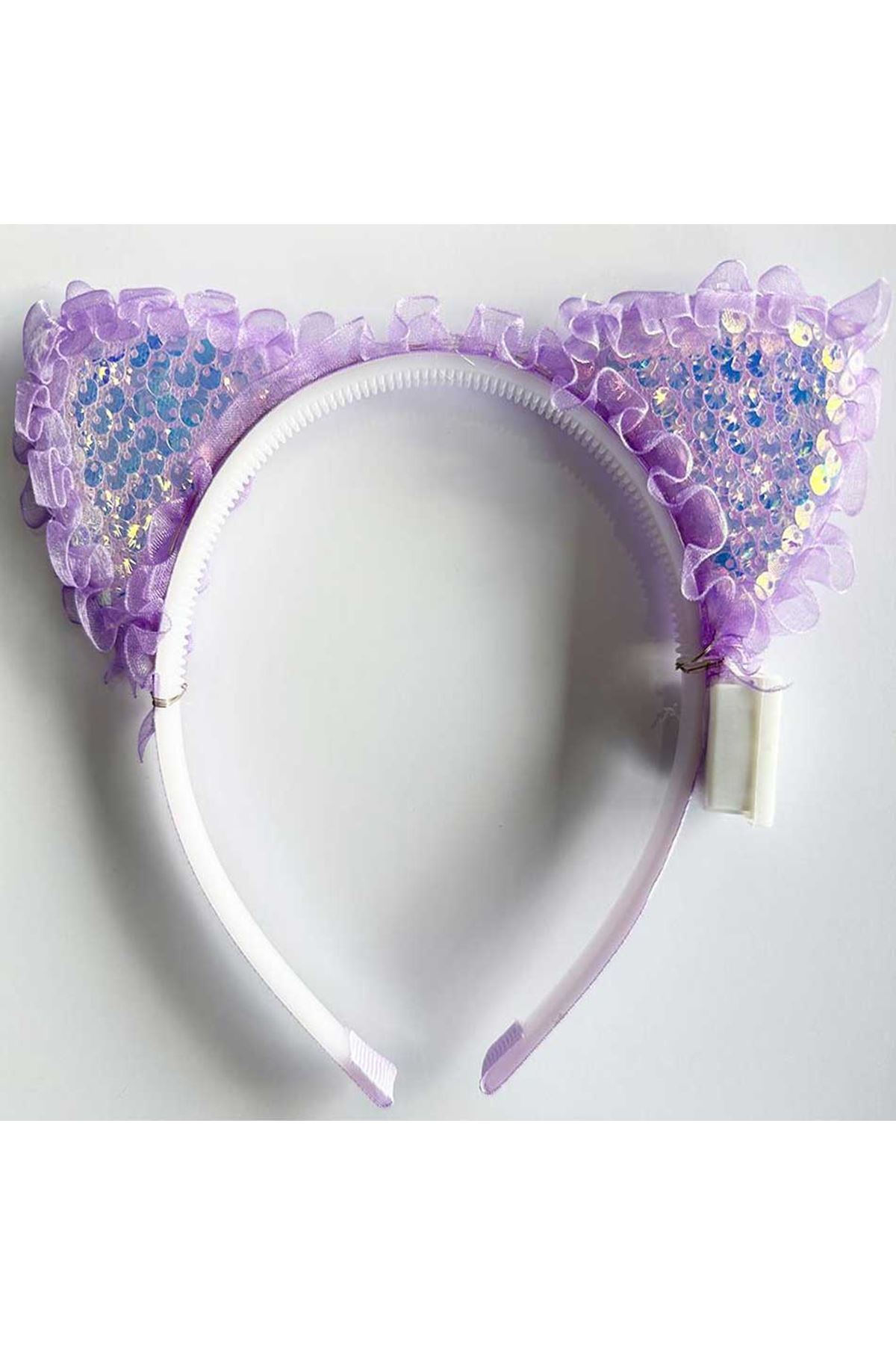 Eğlencenin Ve Şıklığın Bir Araya Geldiği Kenarları Dantelli Mor Pullu Payetli Led Işıklı Kedi Kulak Taç Ile Partilerin Yıldızı Olun!