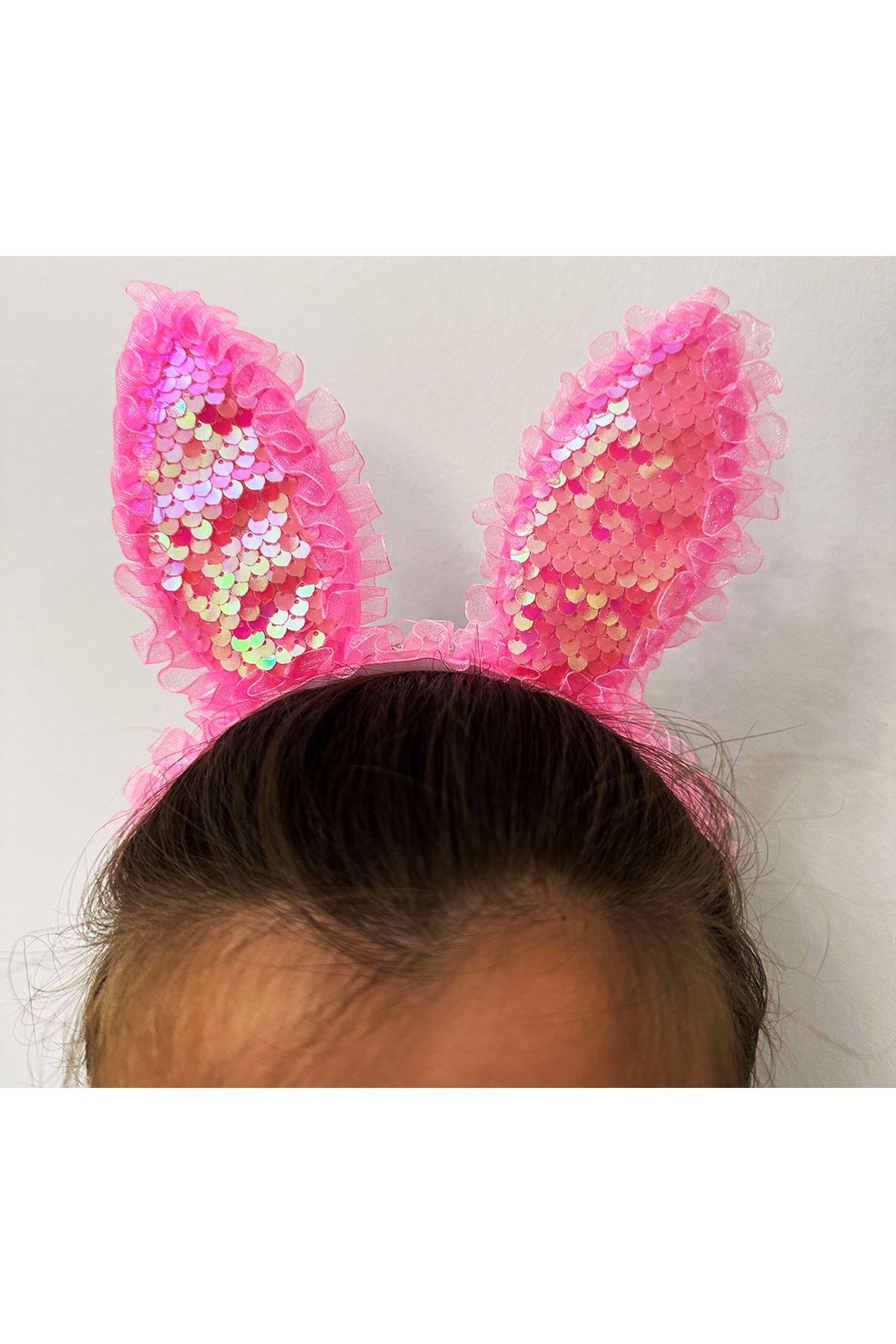 Kenarları Dantelli Pembe Pullu Payetli Led Işıklı Tavşan Kulak Taç ile: