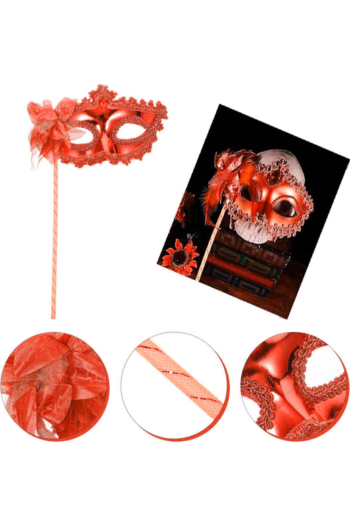 Kırmızı ışıltılı tutmalı fotoğraf çekimi maskesi, fotoğraf çekimlerinize eğlence ve ışıltı katacak harika bir aksesuardır. Bu maske ile unutulmaz anılar biriktirebilir ve fotoğraflarınızı daha özel hale getirebilirsiniz.