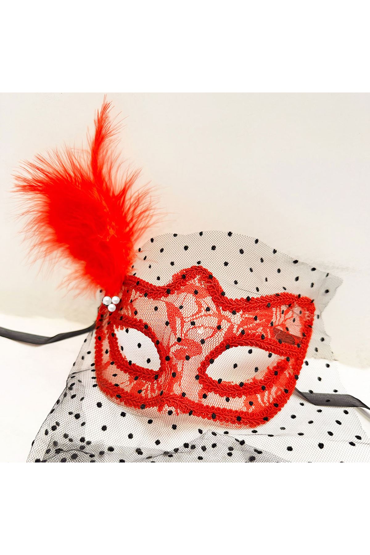 Kırmızı Renk Dantelli Duvaklı Parti Maskesi – Şıklığınızın Tamamlayıcısı