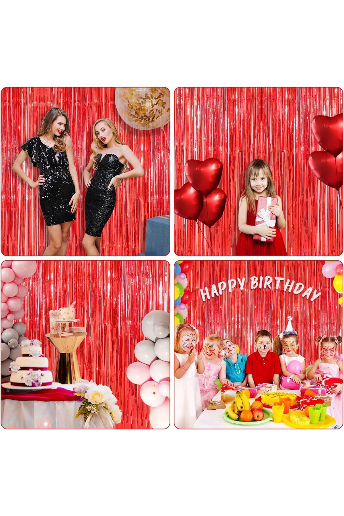 Kırmızı renk ekstra metalize parlak saçaklı arka fon perdesi ile özel günlerinize ve kutlamalarınıza göz kamaştırıcı bir ışıltı katın! İthal malzemeden üretilen bu perde, 1x2 metre boyutuyla her türlü dekorasyona uyum sağlar.