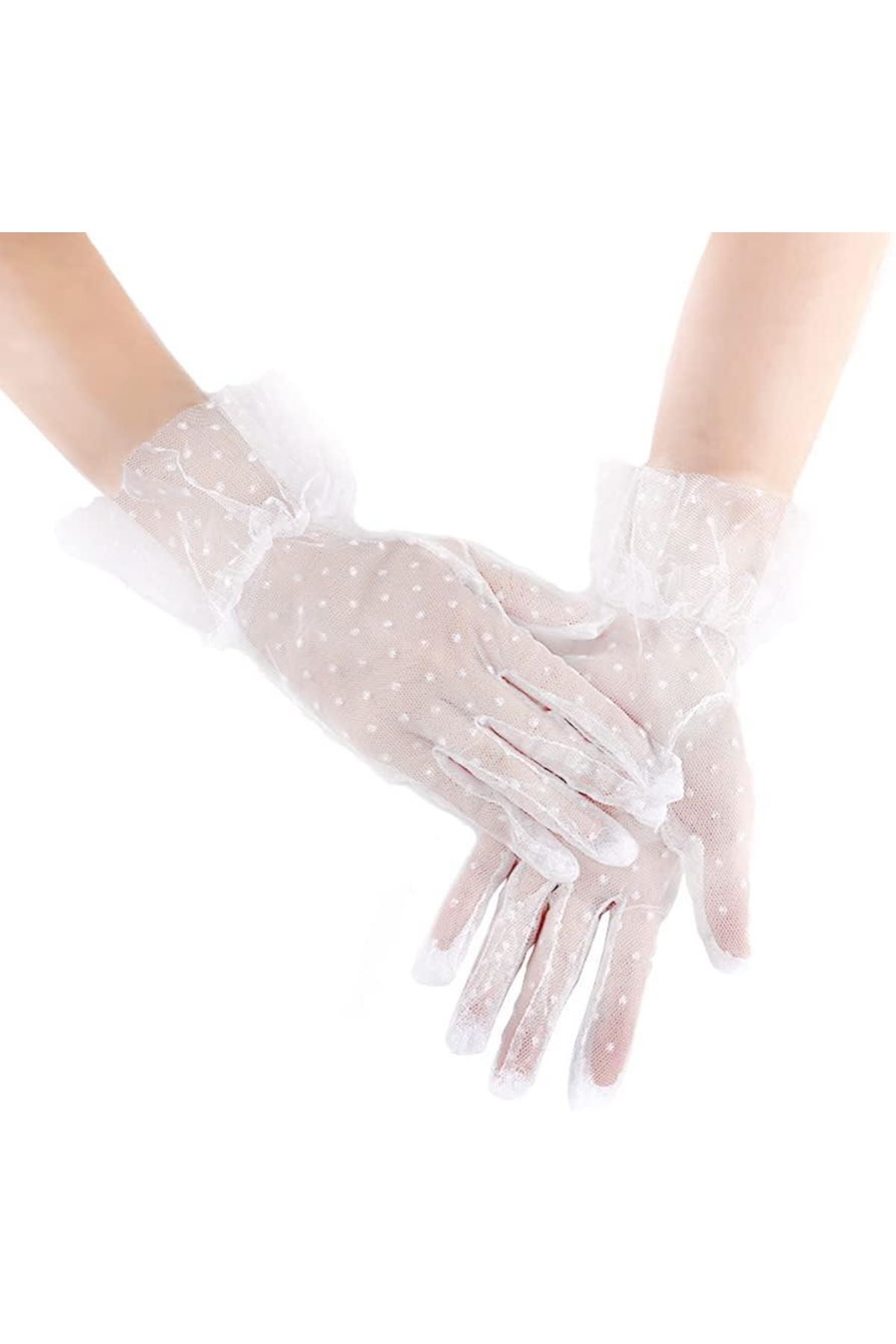 Kısa Boy Güpürlü Beyaz Puantiyeli Tül Eldiven Beyaz RenkYetişkinler Için UygundurKaliteli Tül Malzemeden Üretilmiştir Ithal ÜründürBilek Kısmında Güpür ( Fırfır ) Bulunmaktadır