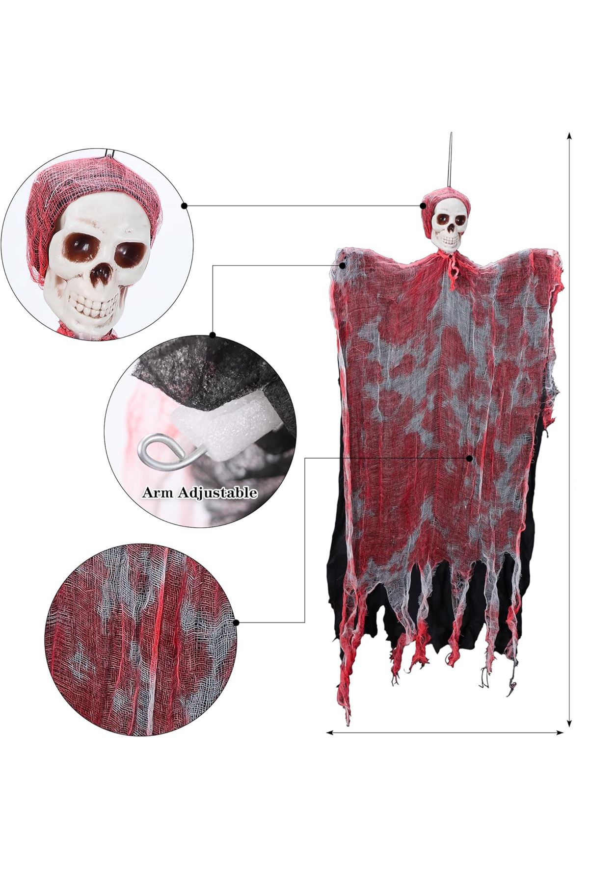 Led Işıklı Kahkaha Atan Sesli Ürpertici Kuru Kafa Kanlı Korku Hayalet Saçaklı DekorÖlçü : 90x50 CmÜrünün Gözlerinde Led ışık Mevcuttur , Seslidir Sensörlüdür Kahkaha Sesi Çıkarmaktadır