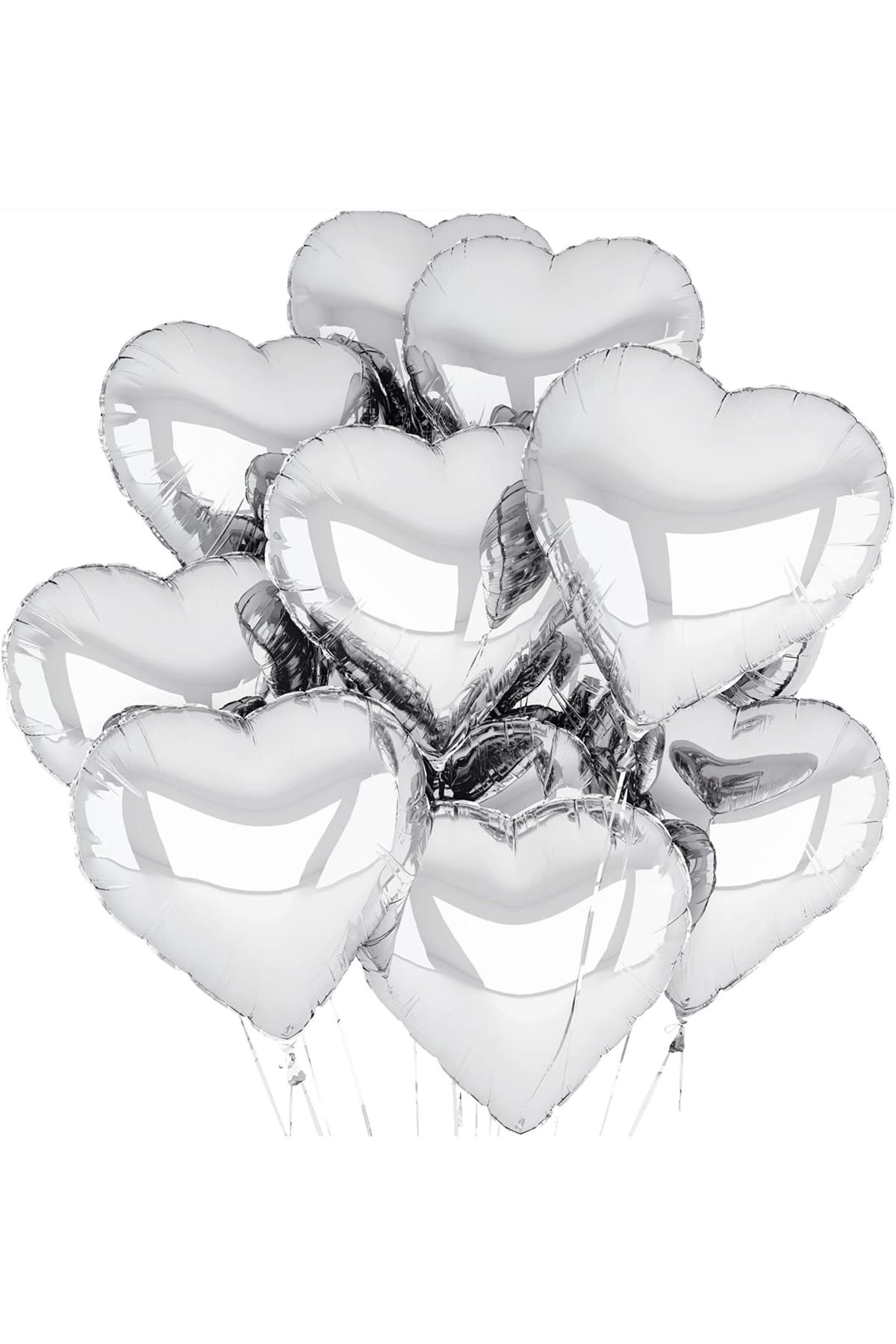 Metalize Parlak Gümüş Şekilli Kalp Balon Folyo 45 cm 10 Adet