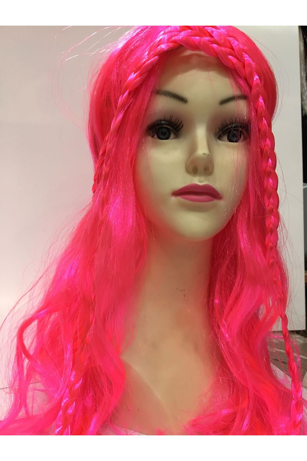 Neon Pembe Renk Örgülü Helen Karakter Peruğu Takma Saç