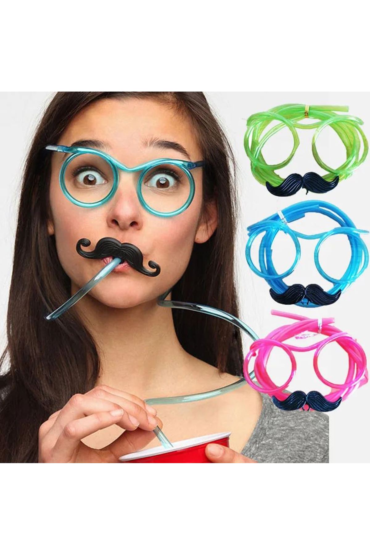 Pipetli Parti Gözlüğü - Bıyıklı Pipet GözlükRenk : Kırmızı Renk Ölçü : Yetişkin Ve Çocuklar Için Uygundur