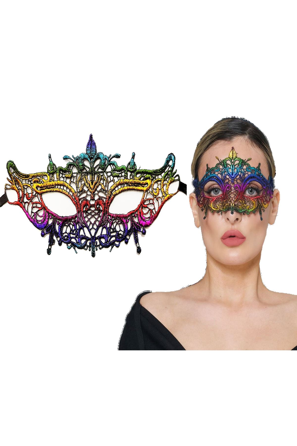 Rengarenk Dantel Kesim Dantel İşlemeli Balo Parti Maskesi, balo, parti veya özel bir gece için gizemli ve şık bir görünüm oluşturmak isteyenler için ideal bir üründür. Zarif dantel kesimi ve gökkuşağı rengi ile göz alıcı bir stil sunar.