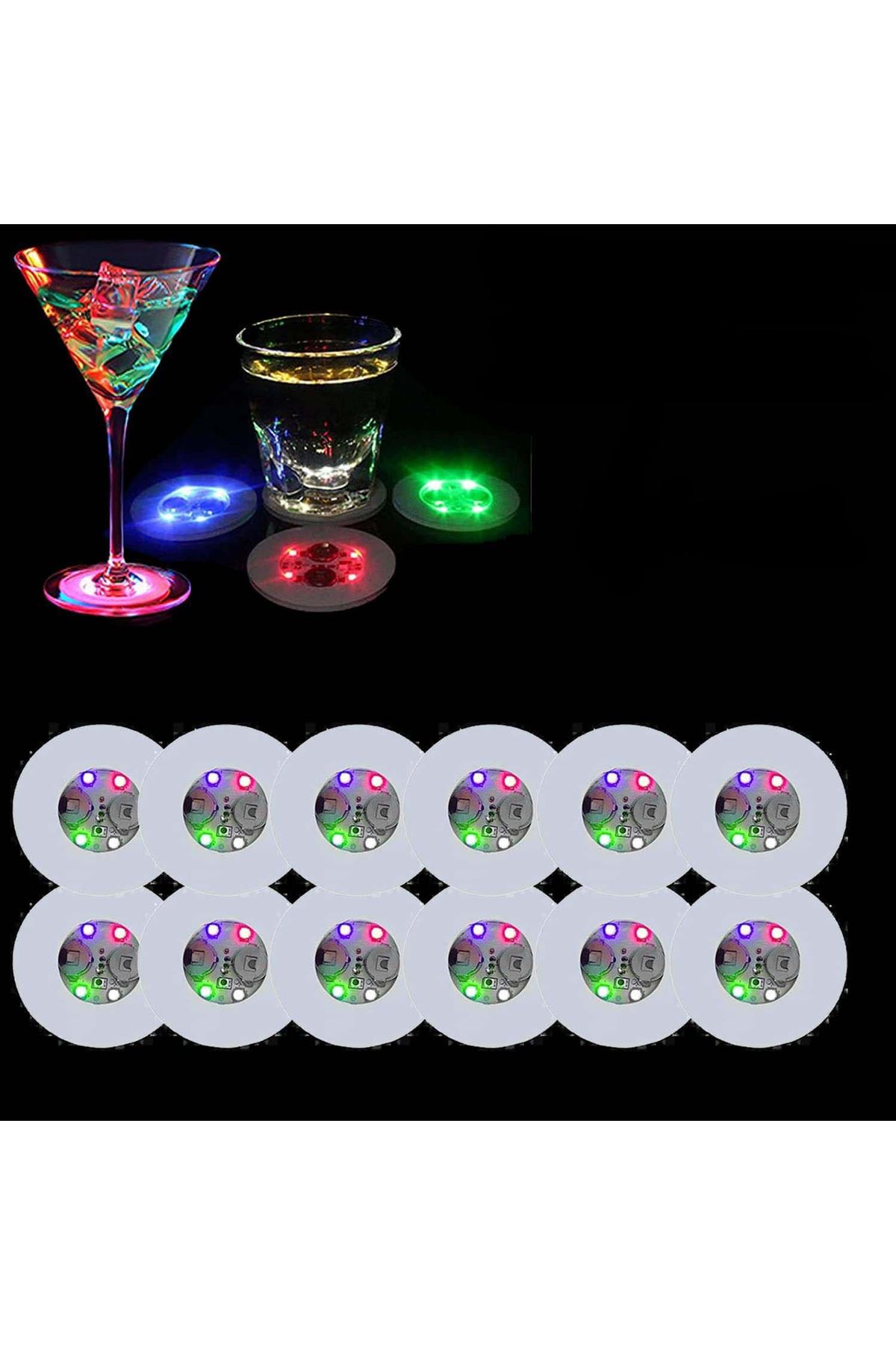 Pilli LED Işıklı Bardak Altlığı - 12'li Set