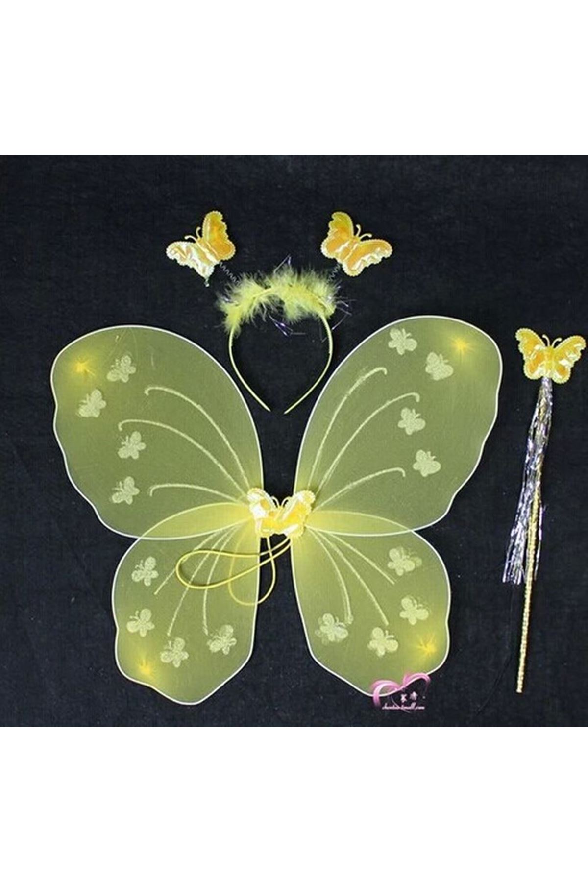 Sarı Renk Kelebek Kanadı Tacı ve Sopası 50x37 cm