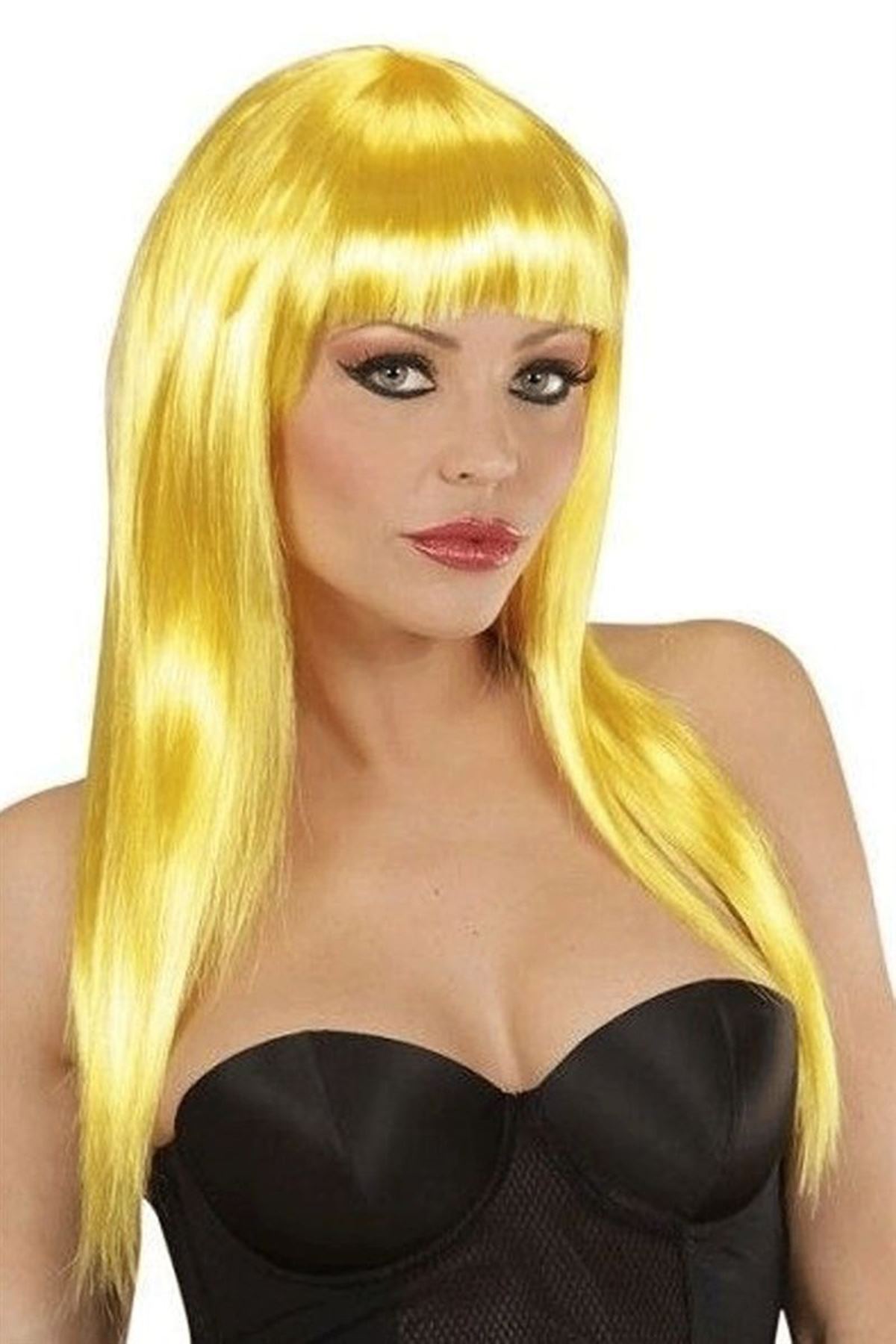 Sarı Renk Uzun Düz Parti Peruğu