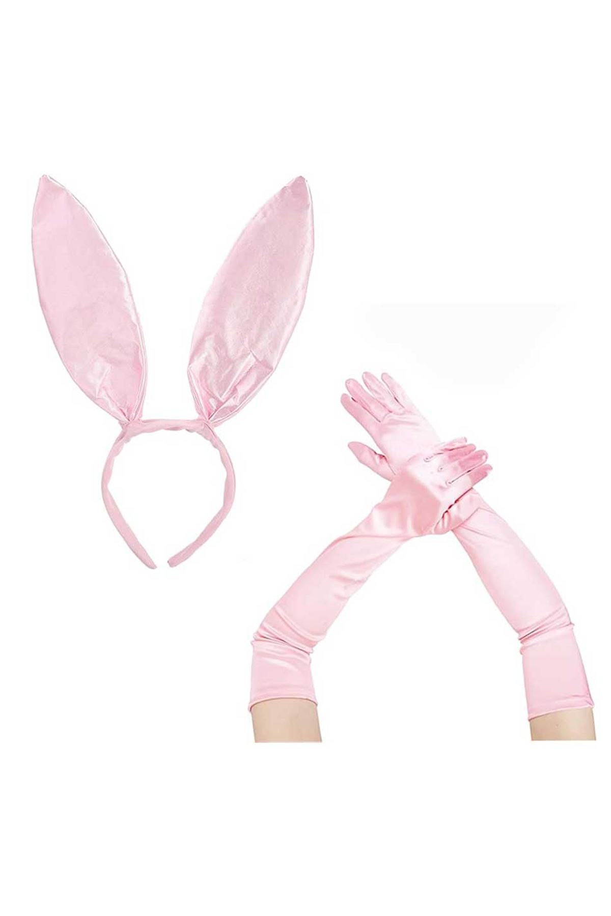 Saten Kaplama Soft Pembe Eldiven 40 cm ve Tavşan Kulak 2’li Set – Şıklığınızı ve Sevimliliğinizi Birleştirin!
