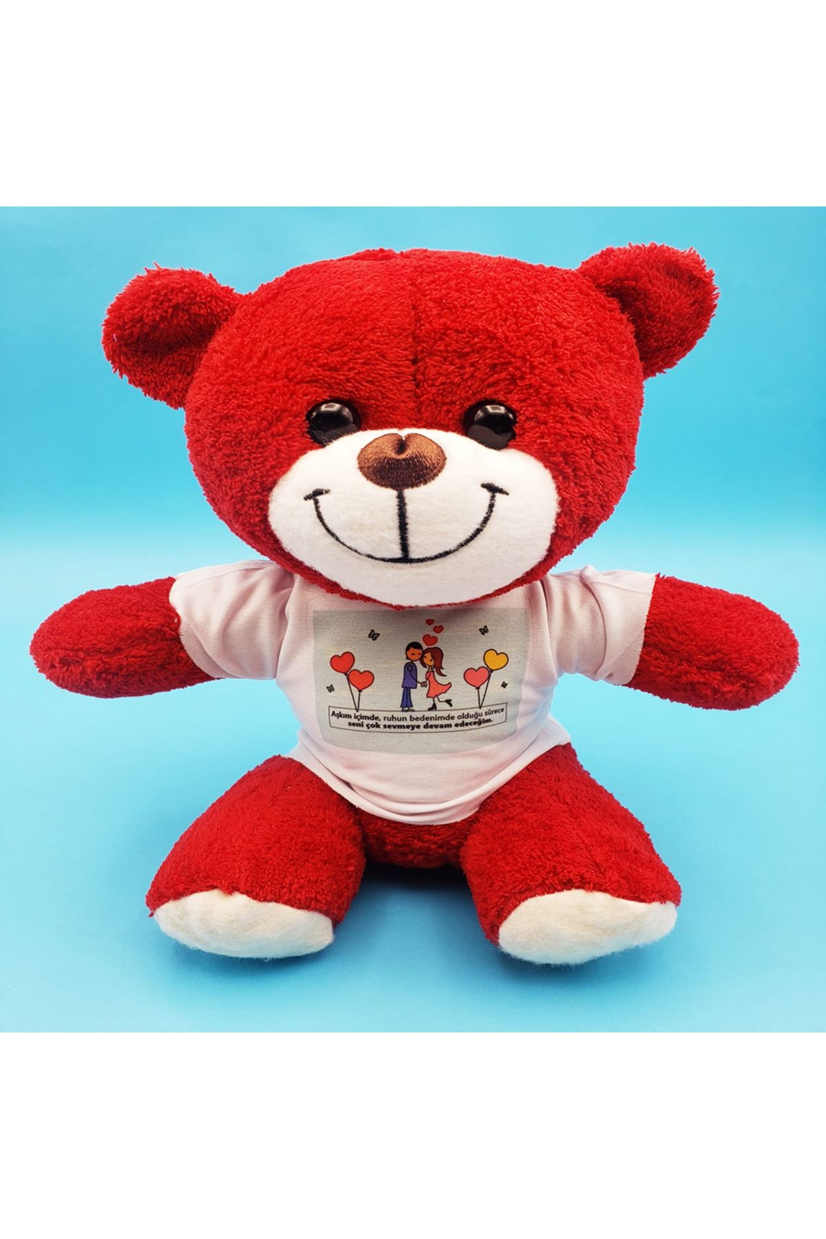 Sevimli Çiftler Tişörtlü Kırmızı Ayı