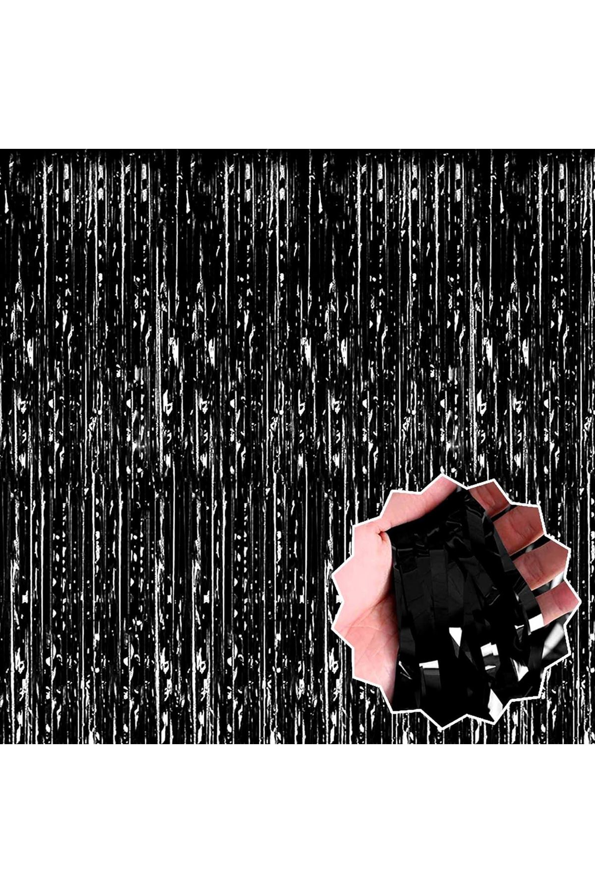Siyah renk ekstra metalize parlak saçaklı arka fon perdesi ile özel günlerinize ve kutlamalarınıza göz kamaştırıcı bir ışıltı katın! İthal malzemeden üretilen bu perde, 1x2 metre boyutuyla her türlü dekorasyona uyum sağlar.
