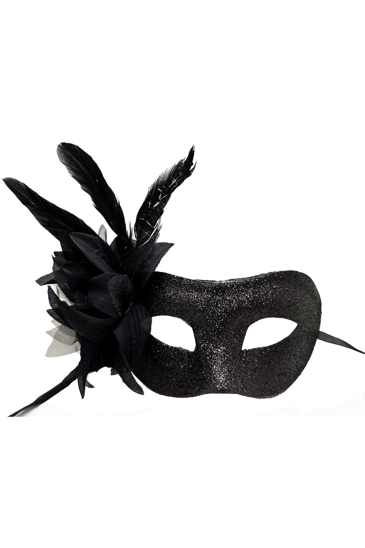 Siyah Renk Metalize Sim Görünümlü Parlak Tüylü Parti Maskesi (22x19 cm)