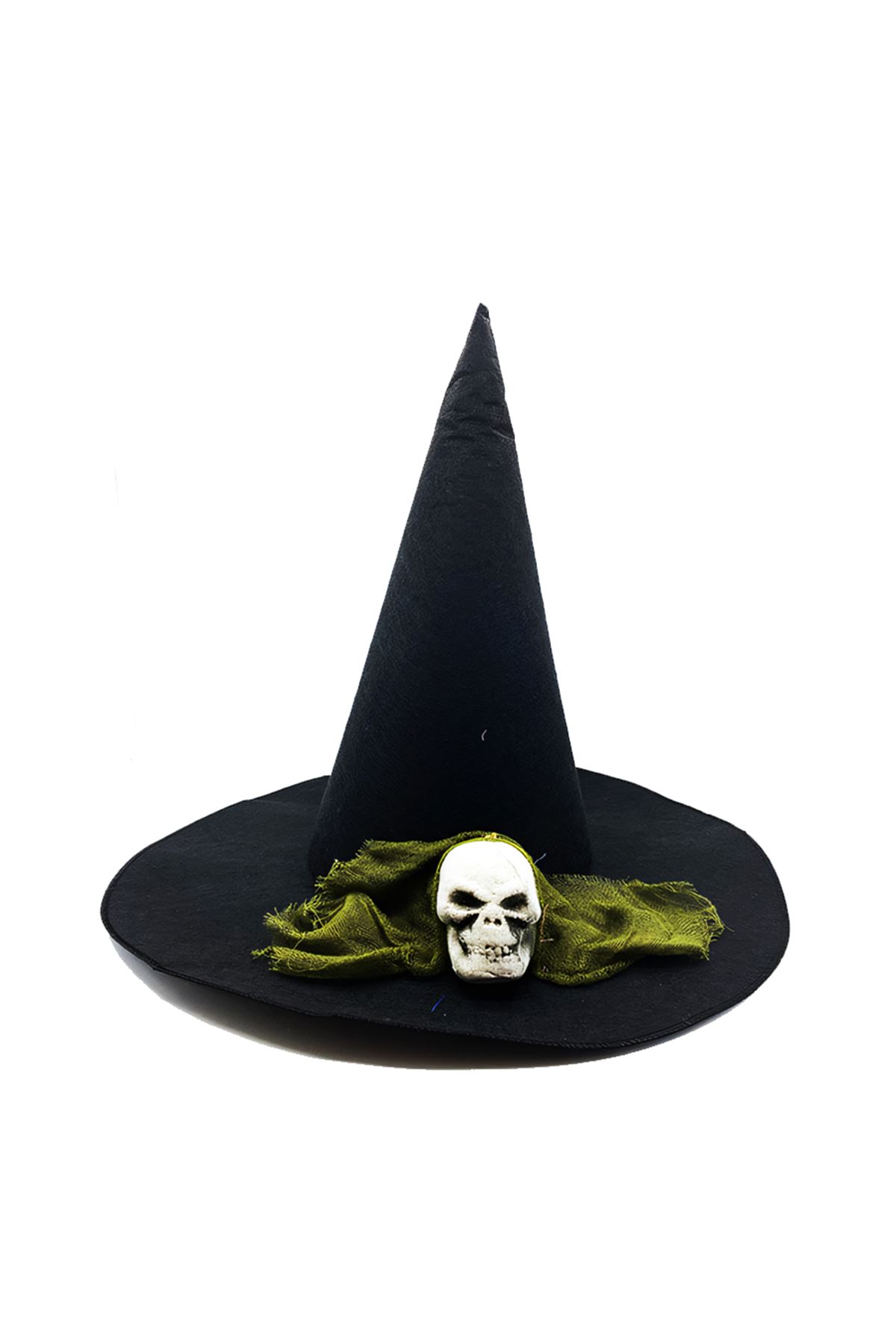 Siyah Renk Kuru Kafa Görselli Cadı Şapkası