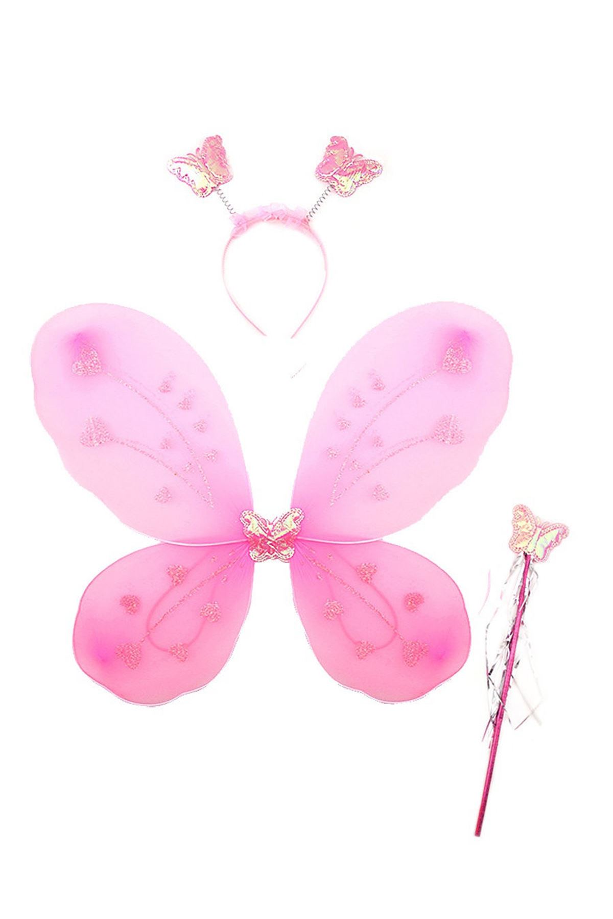 Toz Pembe Renk Kelebek Kanadı Tacı ve Sopası 50x37 cm