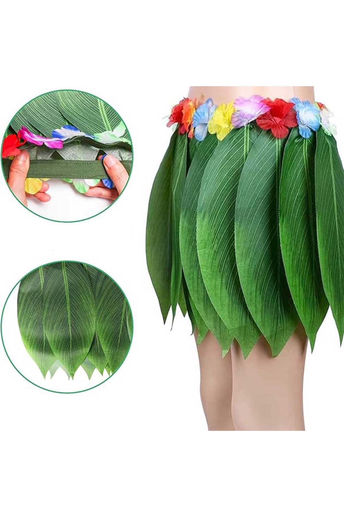 Doğal görünümlü yapay yapraklardan özenle hazırlanan bu etek, tropikal temalı etkinlikleriniz, partileriniz veya özel günleriniz için mükemmel bir seçim. İster Hawai temalı bir doğum günü kutlaması, ister yaz partisi, ister kostüm balosu olsun, bu etek ile tüm dikkatleri üzerinize çekeceksiniz.