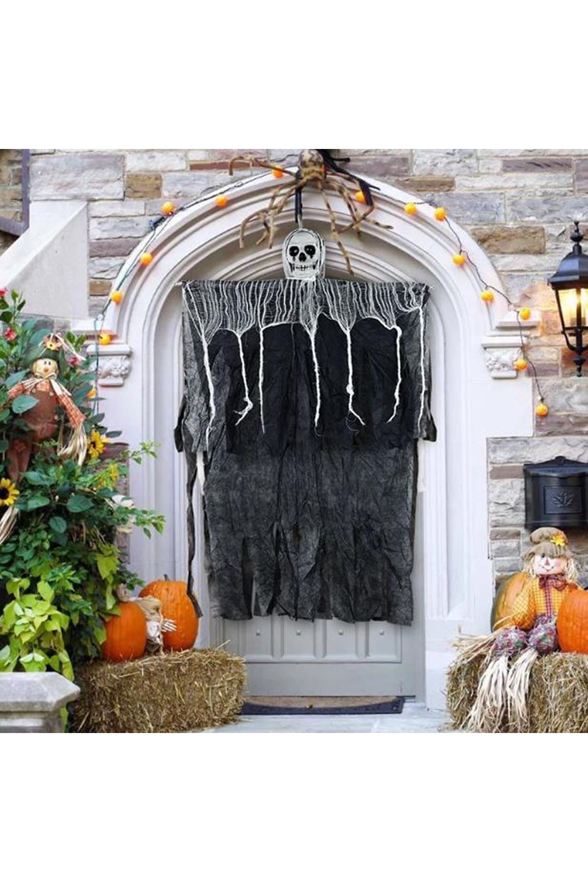 Ürpertici Kuru Kafa Korku Hayalet Saçaklı Dekor 90x50 cm