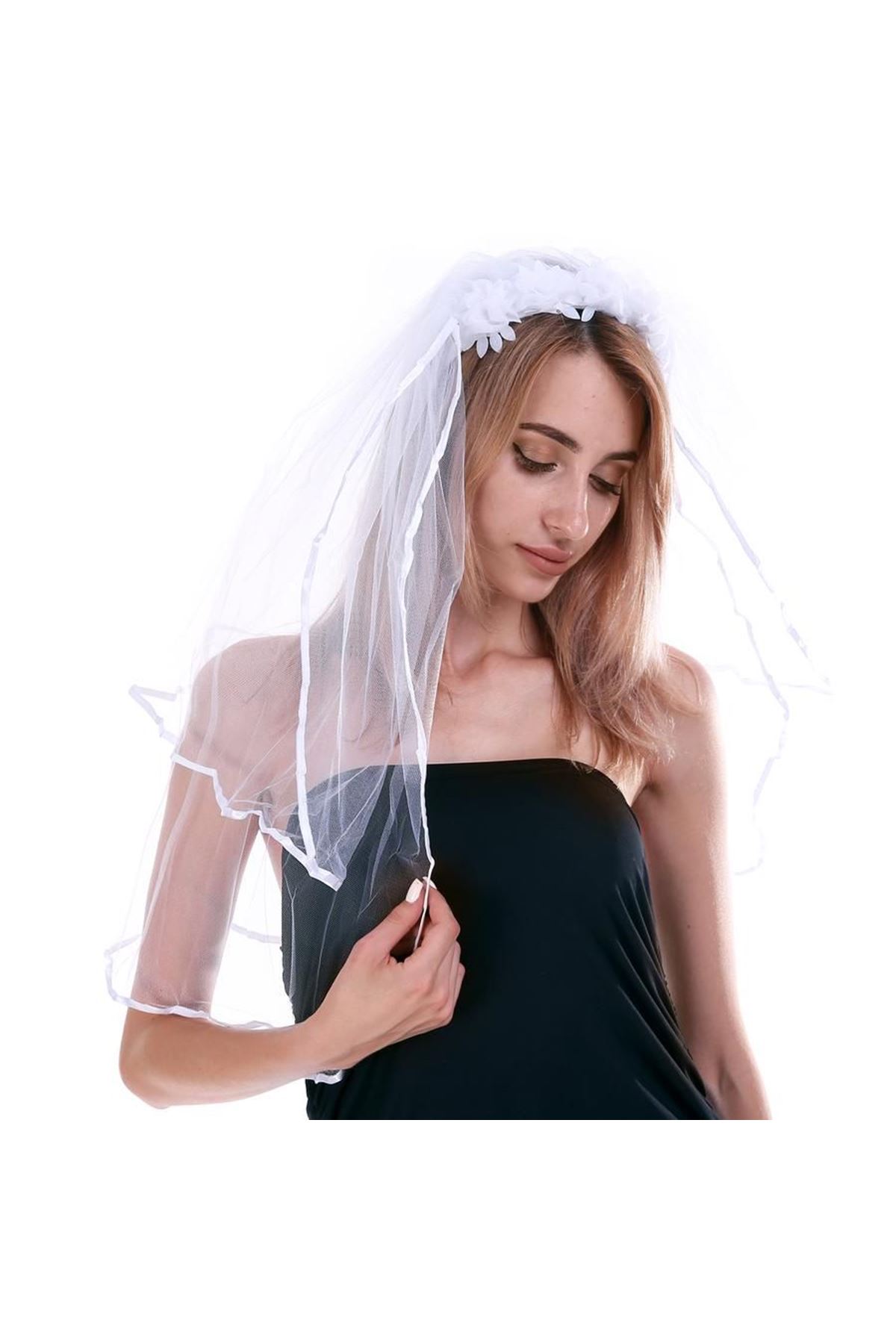 beyaz Peçe Baş Bandı Tüm Gelinler Için Mükemmel!