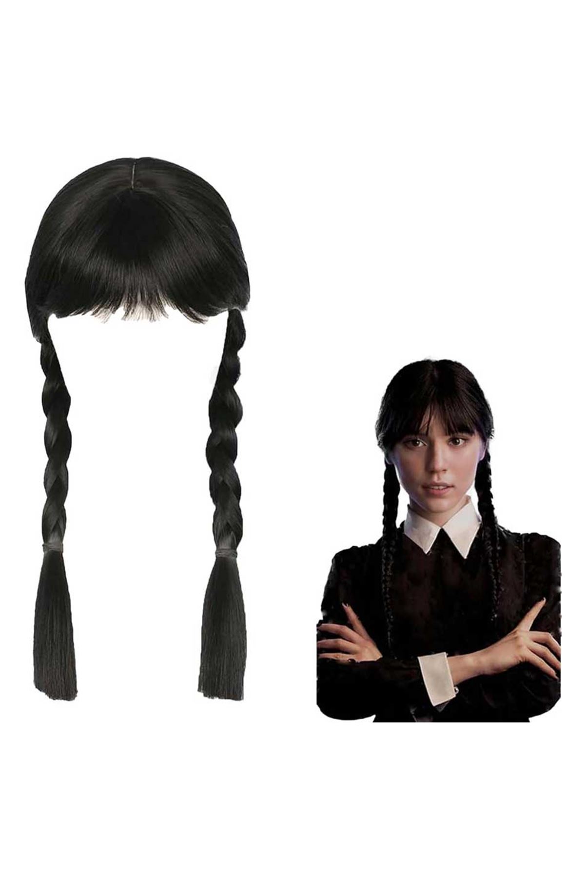 Addams Ailesi'nin sevilen karakteri Wednesday Addams'ın gotik ve karanlık tarzını yansıtan bu siyah örgülü peruk ile cosplay etkinlikleri veya temalı partilerde dikkatleri üzerinize çekin.