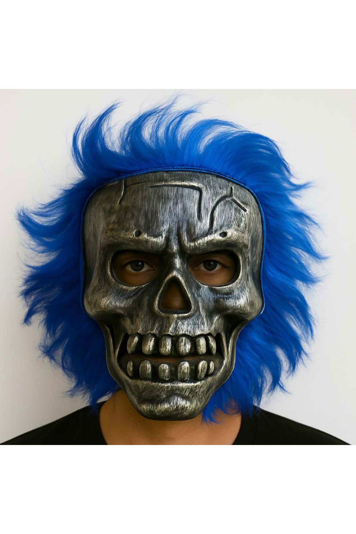 Eğlencenin ve korkunun birleştiği bu çarpıcı Mavi Saçlı Metalik Kuru Kafa Maske ile tüm dikkatleri üzerinize çekin! Göz alıcı mavi yapay saçları ve detaylı metalik iskelet yüzüyle hem Cadılar Bayramı partilerinde hem de kostüm etkinliklerinde fark yaratın.Yüksek kaliteli plastik malzemeden üretilmiş bu maske, hafif yapısıyla konforlu bir kullanım sunar.Yüz kısmındaki boşluklar sayesinde nefes alma ve konuşma kolaylığı sağlar.