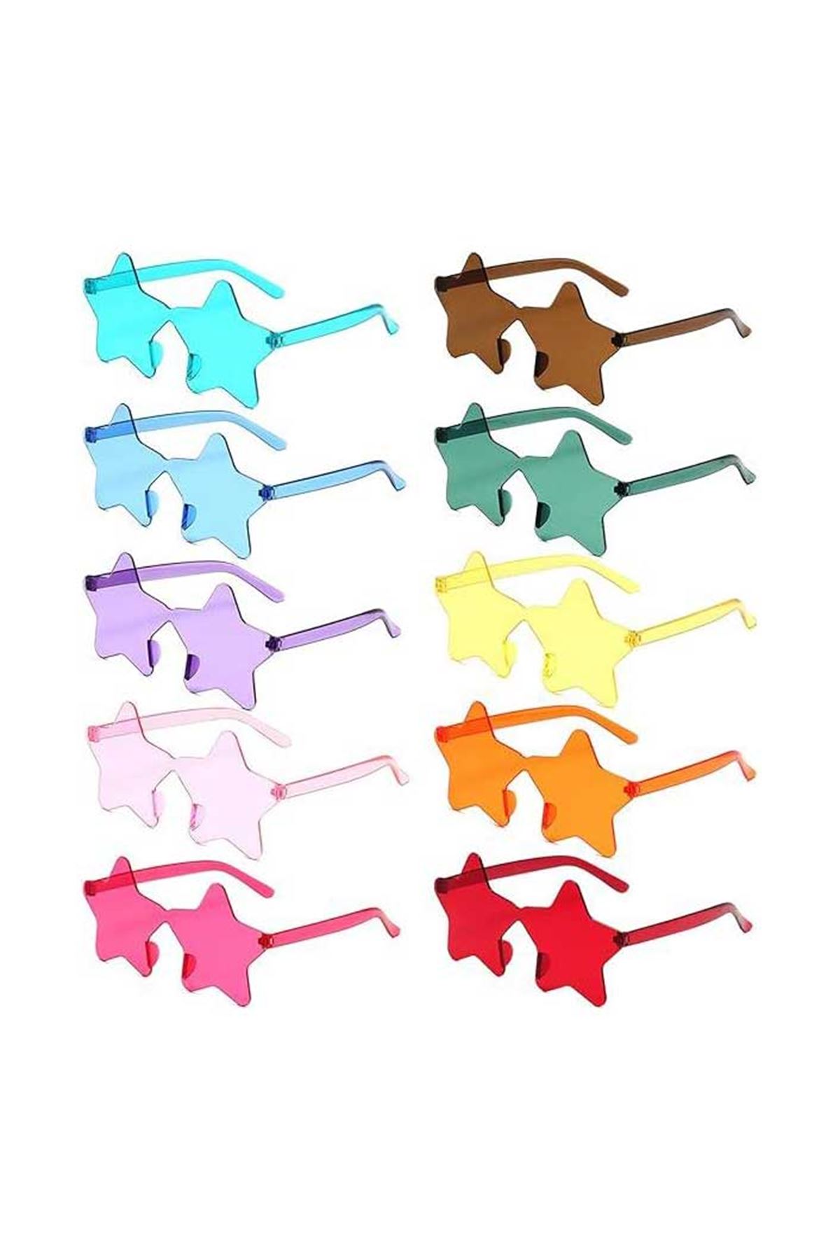 Yıldız Şekilli Çerçevesiz Parti Gözlüğü 6 Renk 6 AdetKaliteli Plastik Malzemeden ÜretilmiştirHem Yetişkinlere Hem Çocuklara Uyumludur
